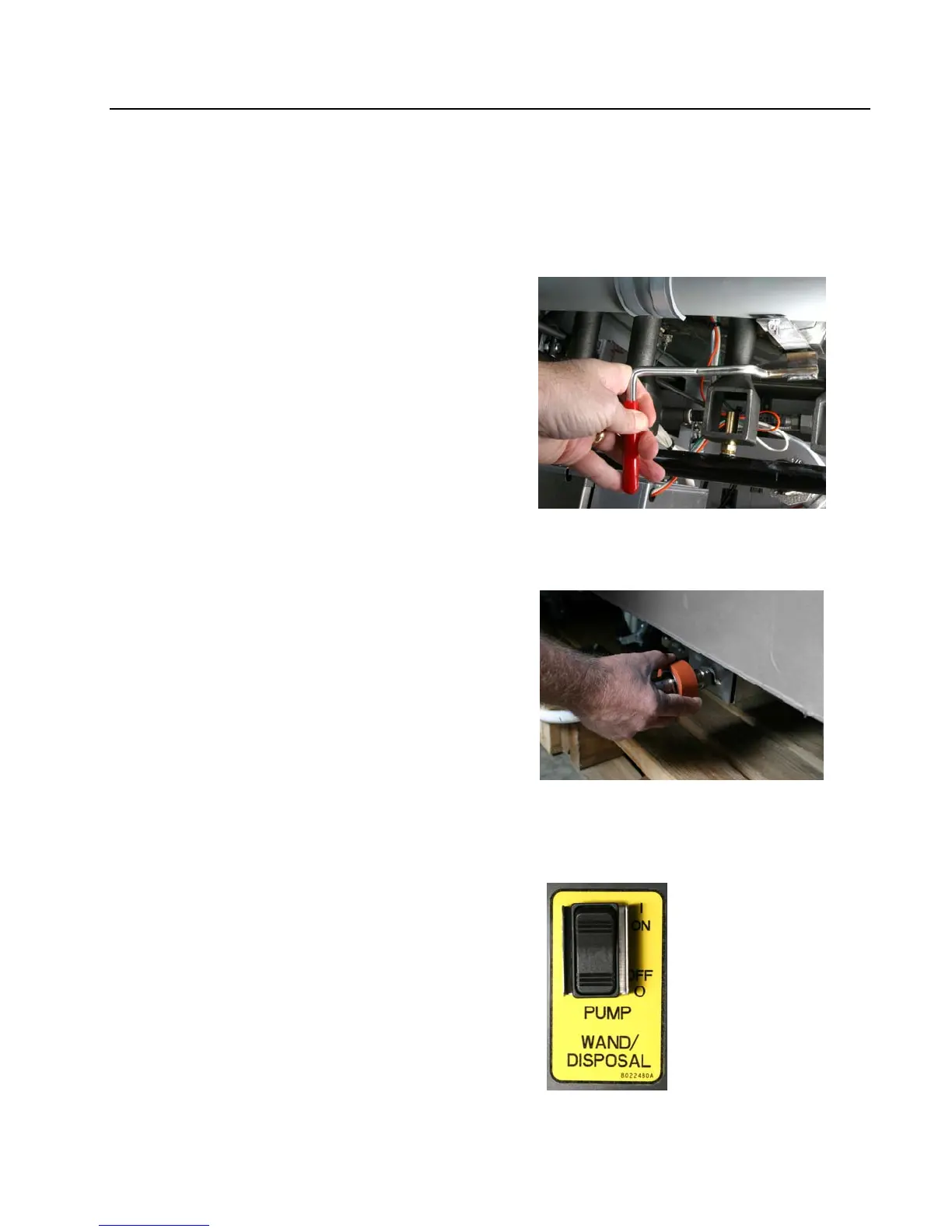 Moving the red drain valve handle to open the