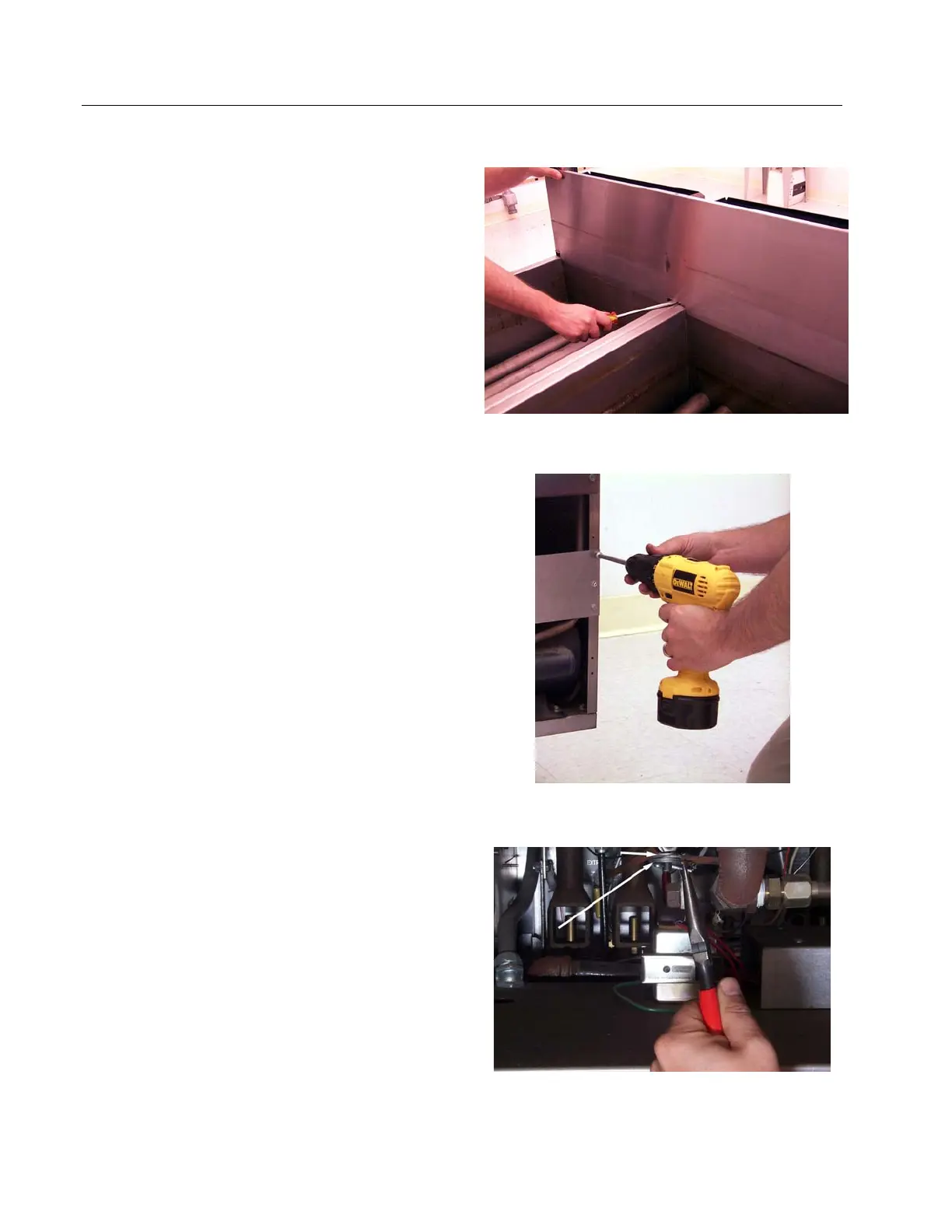 10. Remove screws securing flue-cap braces to frypot