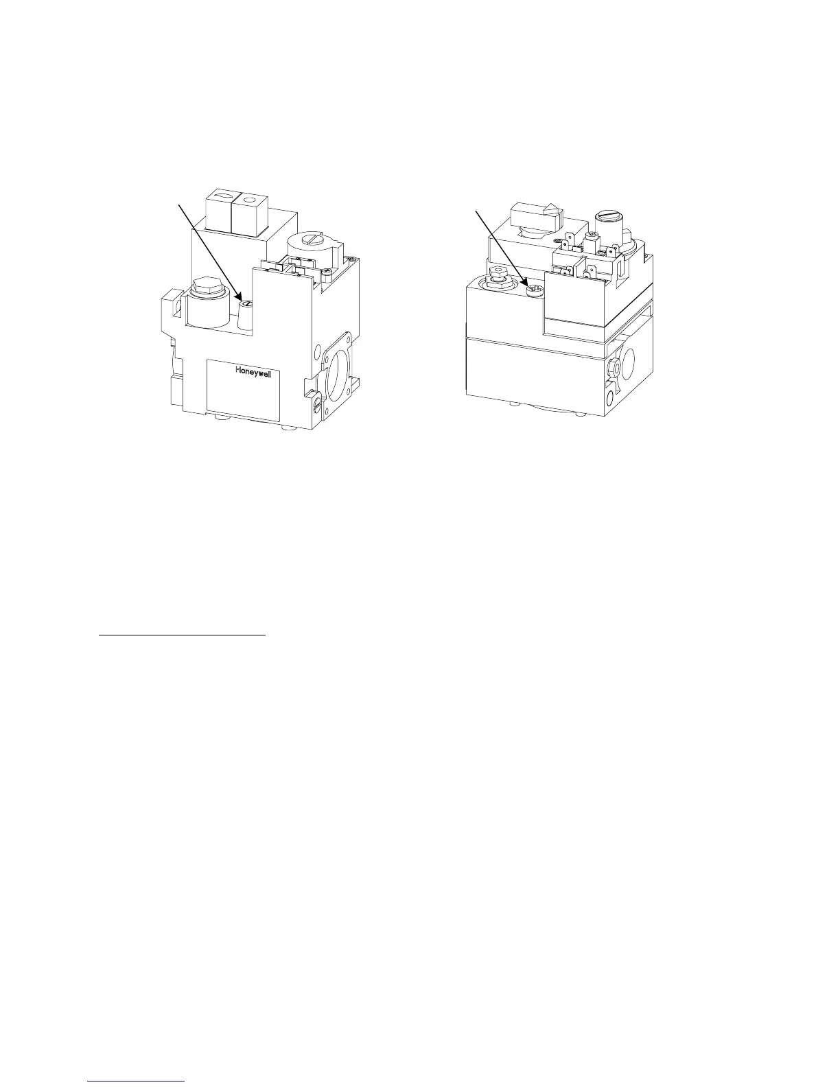 Pilot adjustment locations on CE gas valves (left) and non-CE gas valves (right).