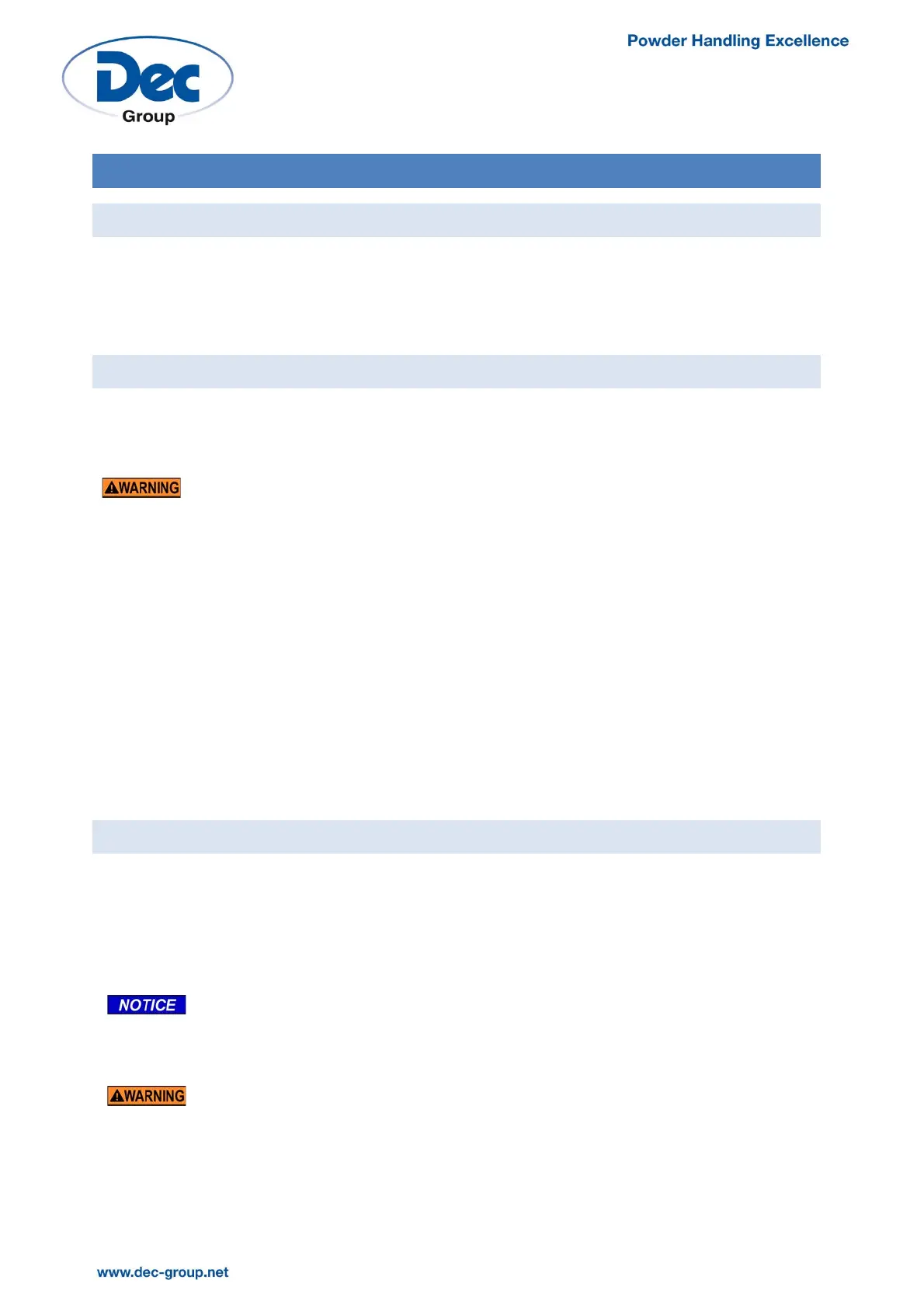 the type of powders transferred. These controls can be done directly by the operators (check of
