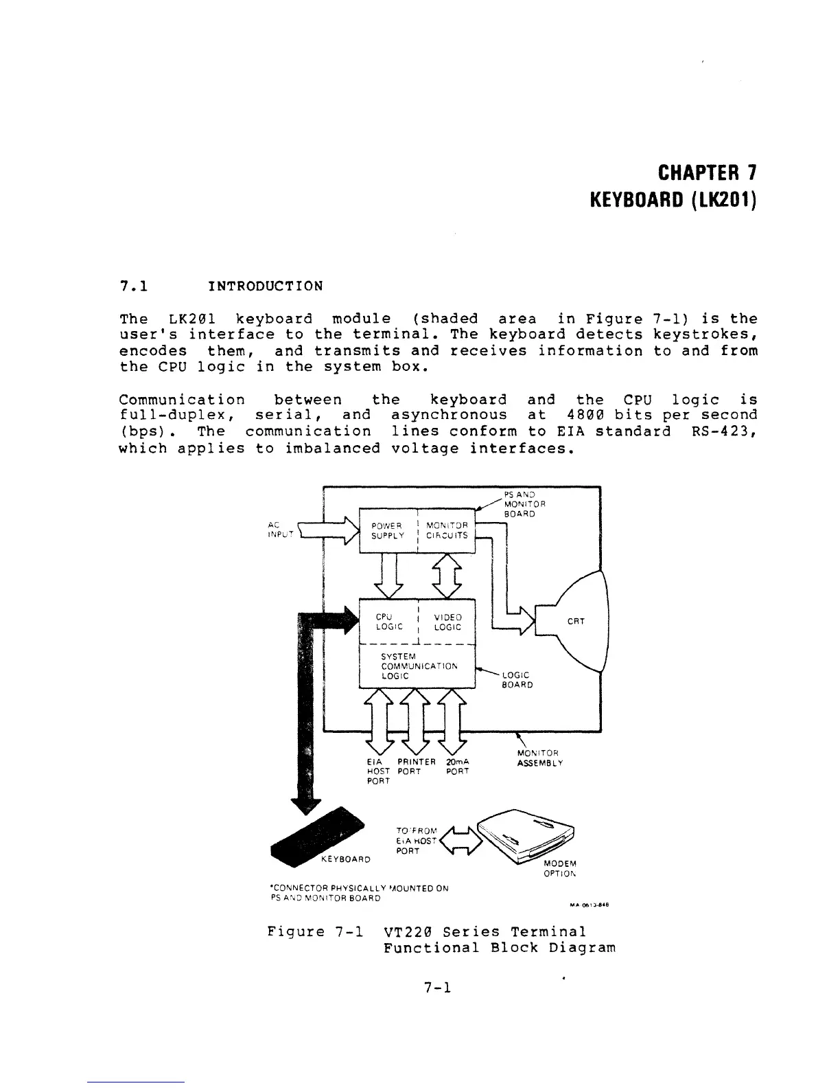 DEC VT220 - Chapter 7: Keyboard (LK201); 7.1 Introduction