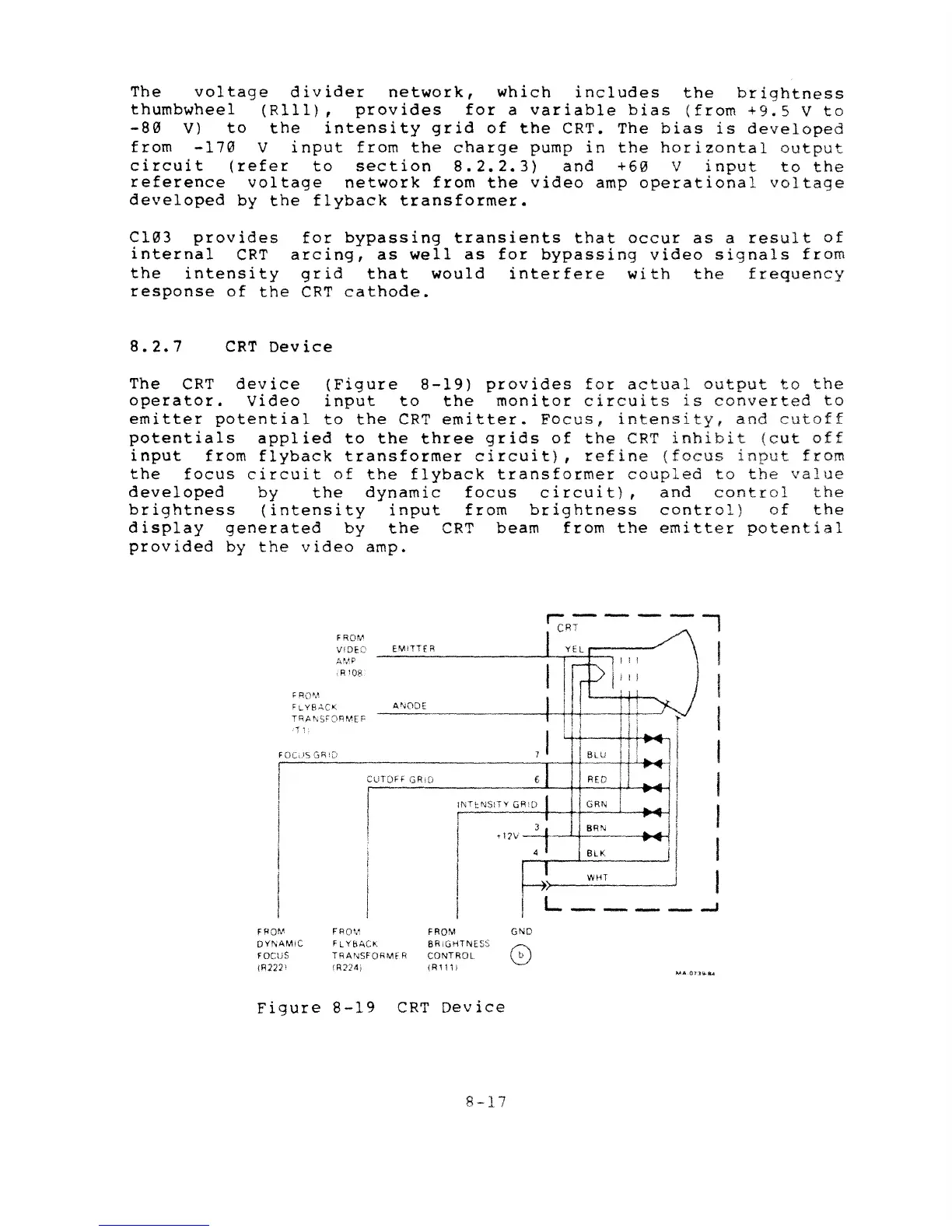 DEC VT220 - 8.2.7 CRT Device; 8.4 Schematic Reference Information