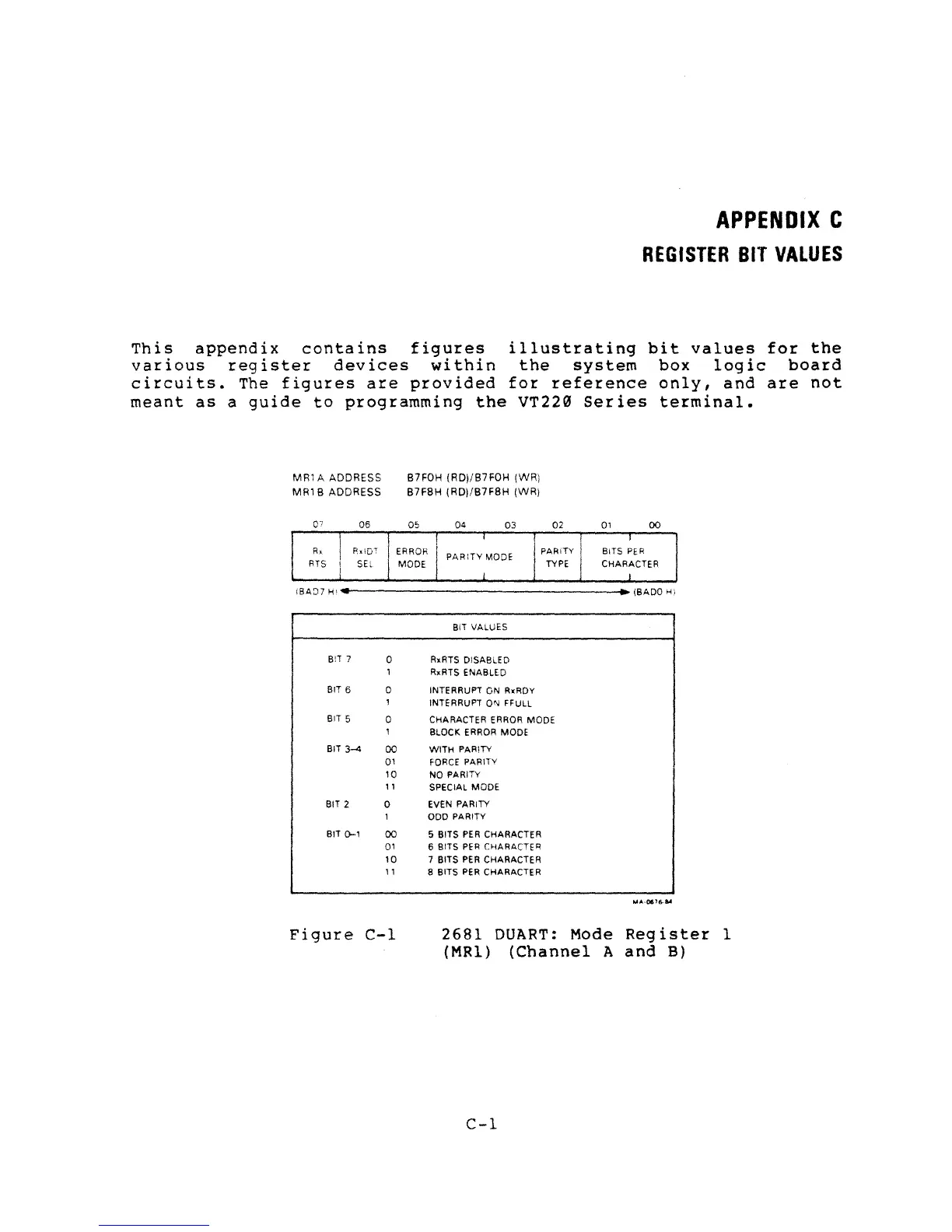 DEC VT220 - Appendix C: Register Bit Values; 2681 DUART: Mode Register 1 (MR1) (Channel A and B)