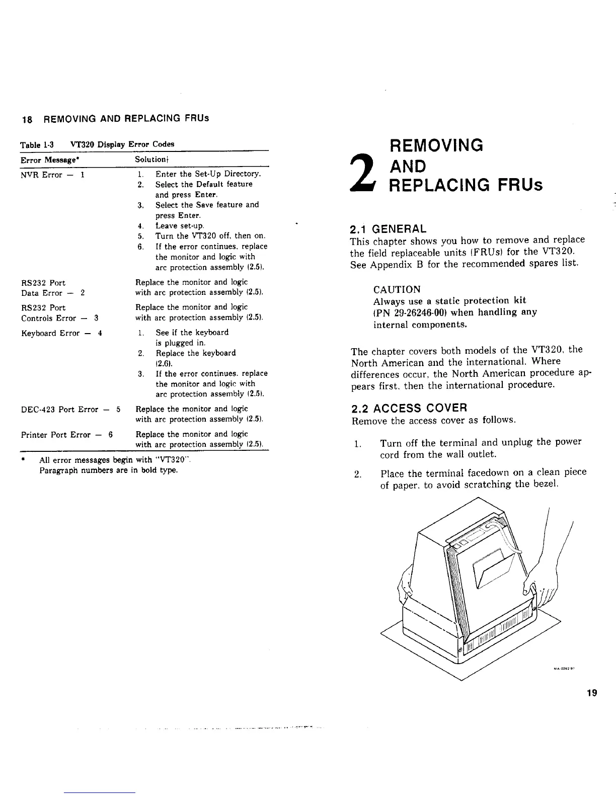 DEC VT320 - Removing and Replacing FRUs; FRU Replacement Overview