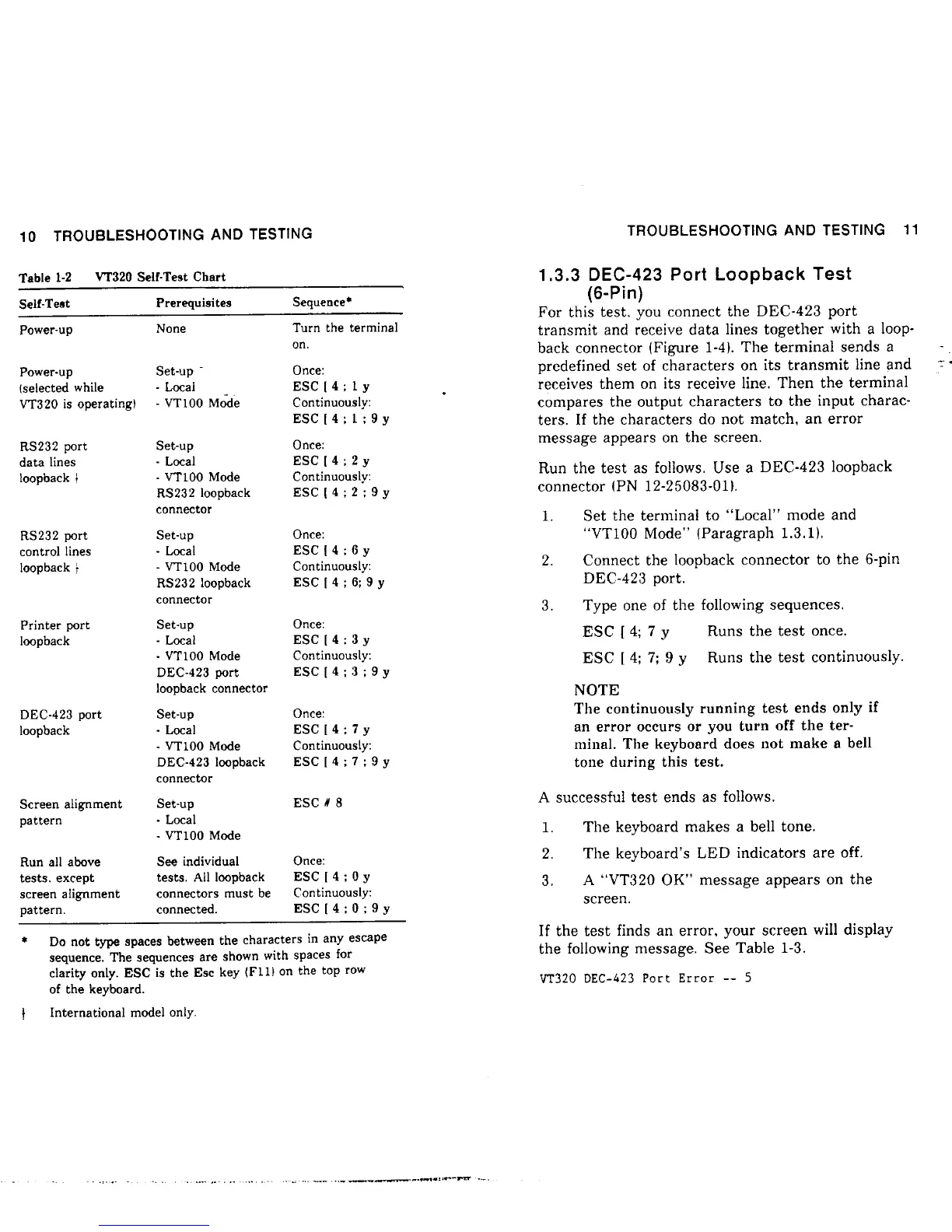 DEC VT320 - Port Loopback Testing