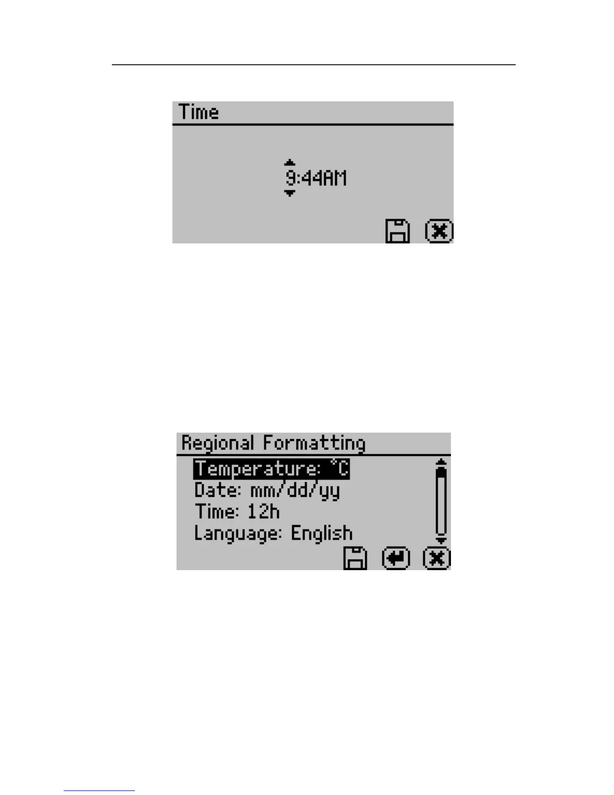 (12 vs 24 hour) and the language.