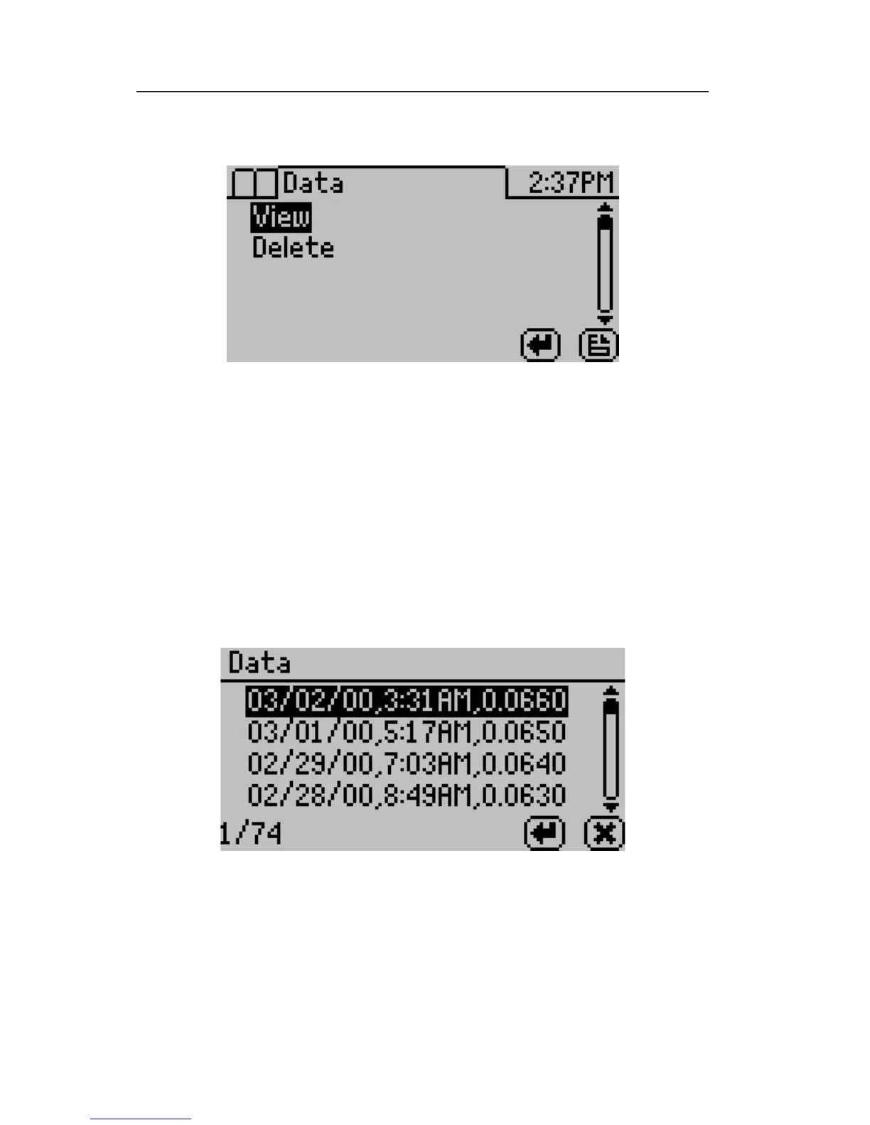 up/down arrows will move you through the stored data with the