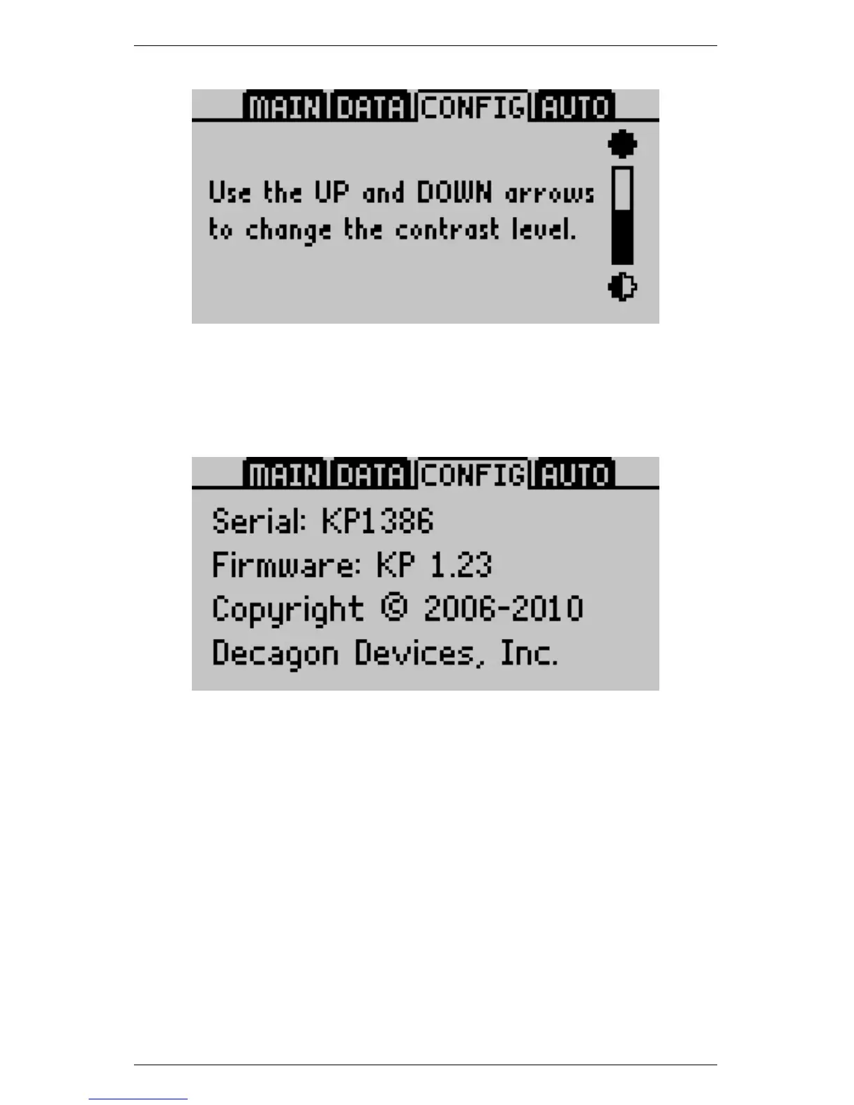 Displays the serial number and firmware version of your KD2 Pro.