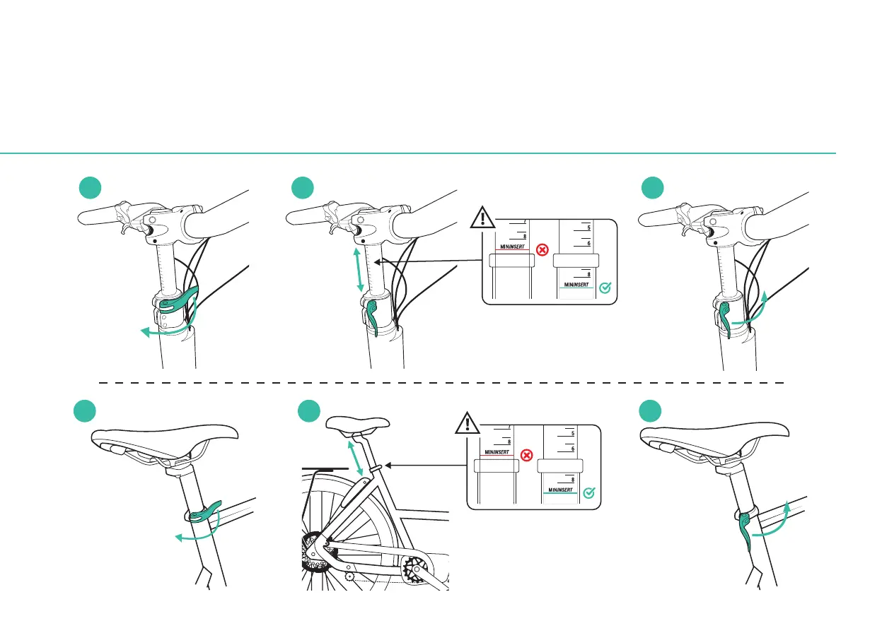 Saddle and handlebar settings / Réglages de la selle et du guidon / Ajues de sillín y manillar / Sitz- und Lenkereinellungen / Impoazioni sella e manubrio / Afellen van het zadel en het uur / Regulação do selim e guiador / Uawienia
