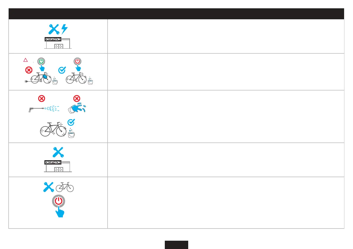 Dacă butonul, cablul sau cadrul sunt deteriorate zic, vizitați un atelier DECATHLON pentru a efectua un test electric.