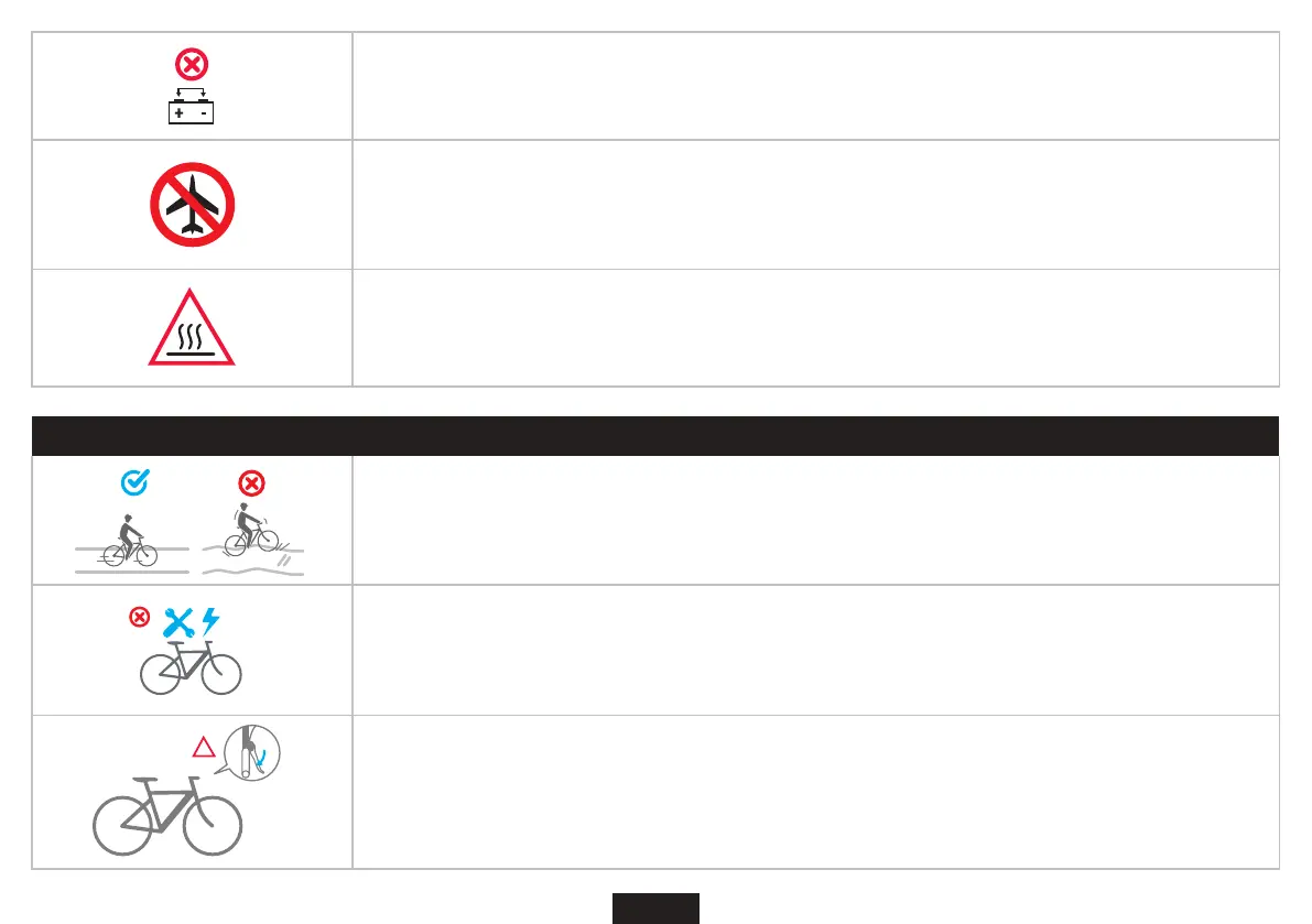Ne izlažite bicikl temperaturi iznad 50°C. Izvan ovog raspona, doći će do uticaja na trajanje baterije.