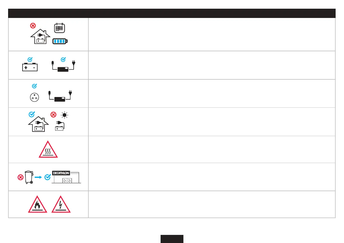 Не използвайте зарядно устройство, различно от предоставеното от DECATHLON за този модел велосипед.