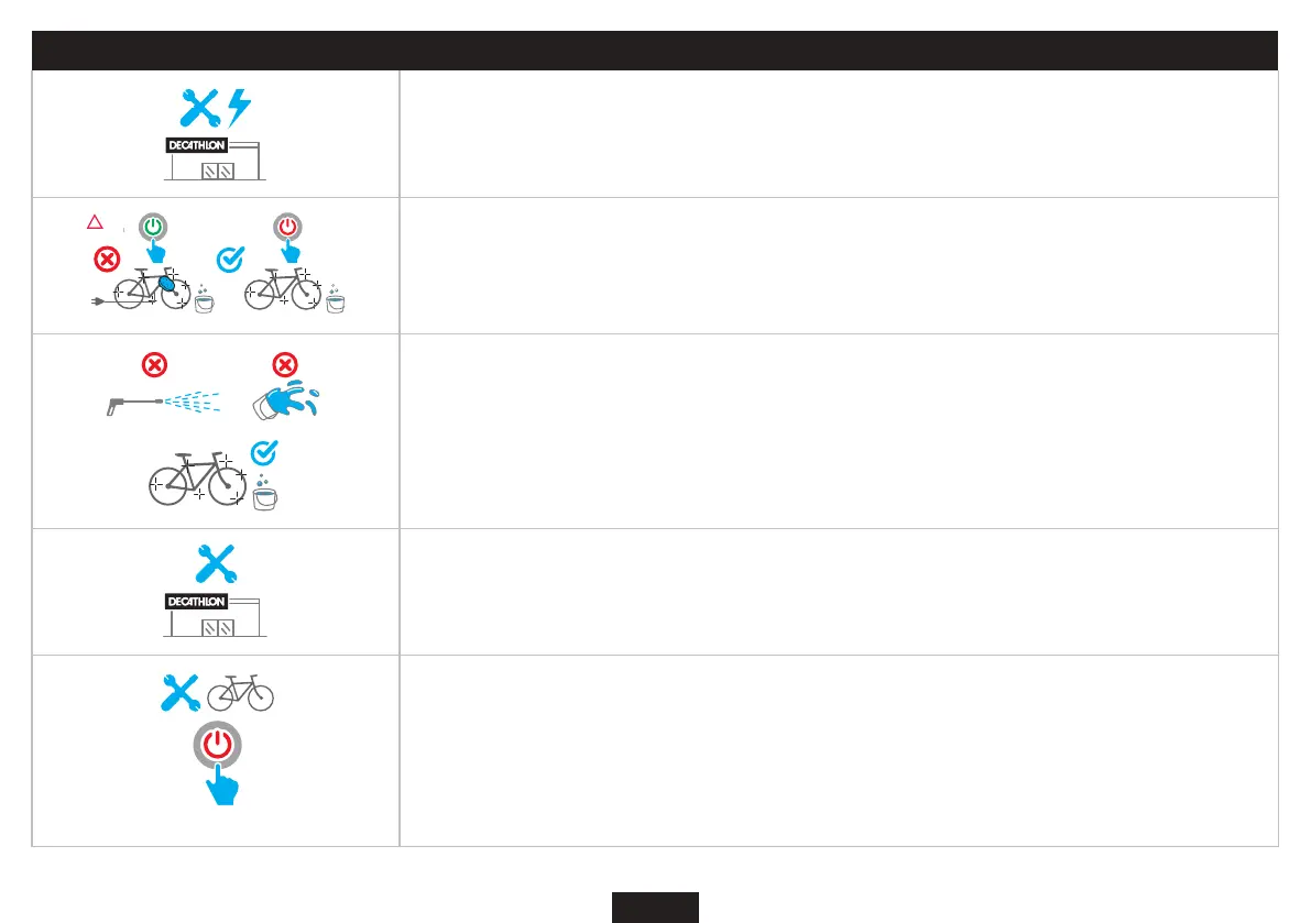 Ако кабелът, бутонът или рамката са физически повредени, направете електрически тест в сервиз на DECATHLON.