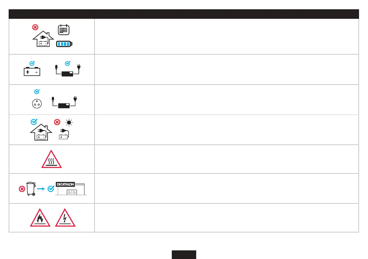 Не утилізуйте акумулятор у непридатних для цього контейнерах. Поверніть використаний акумулятор у магазин Decathlon для утилізації.