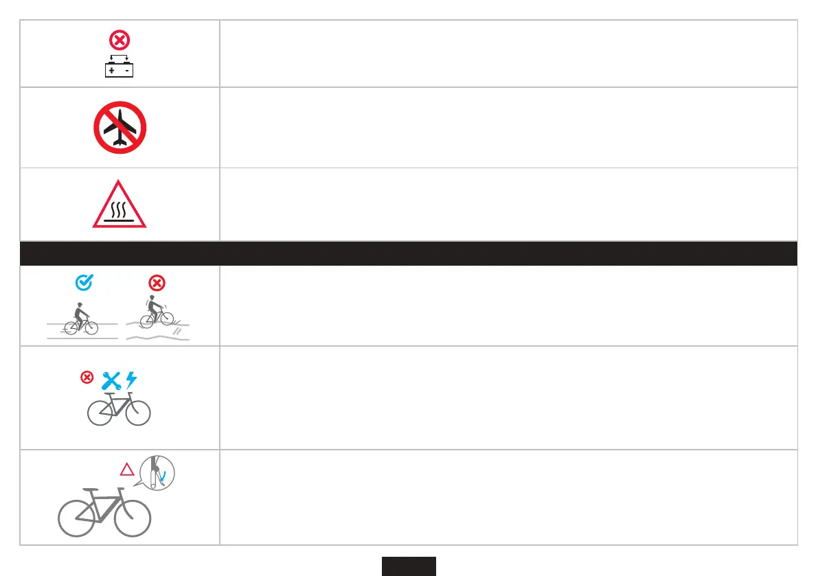 Не піддавайте велосипед впливу температури вище 50 °C. Вихід за межі цього значення призведе до скорочення строку служби акумулятора.