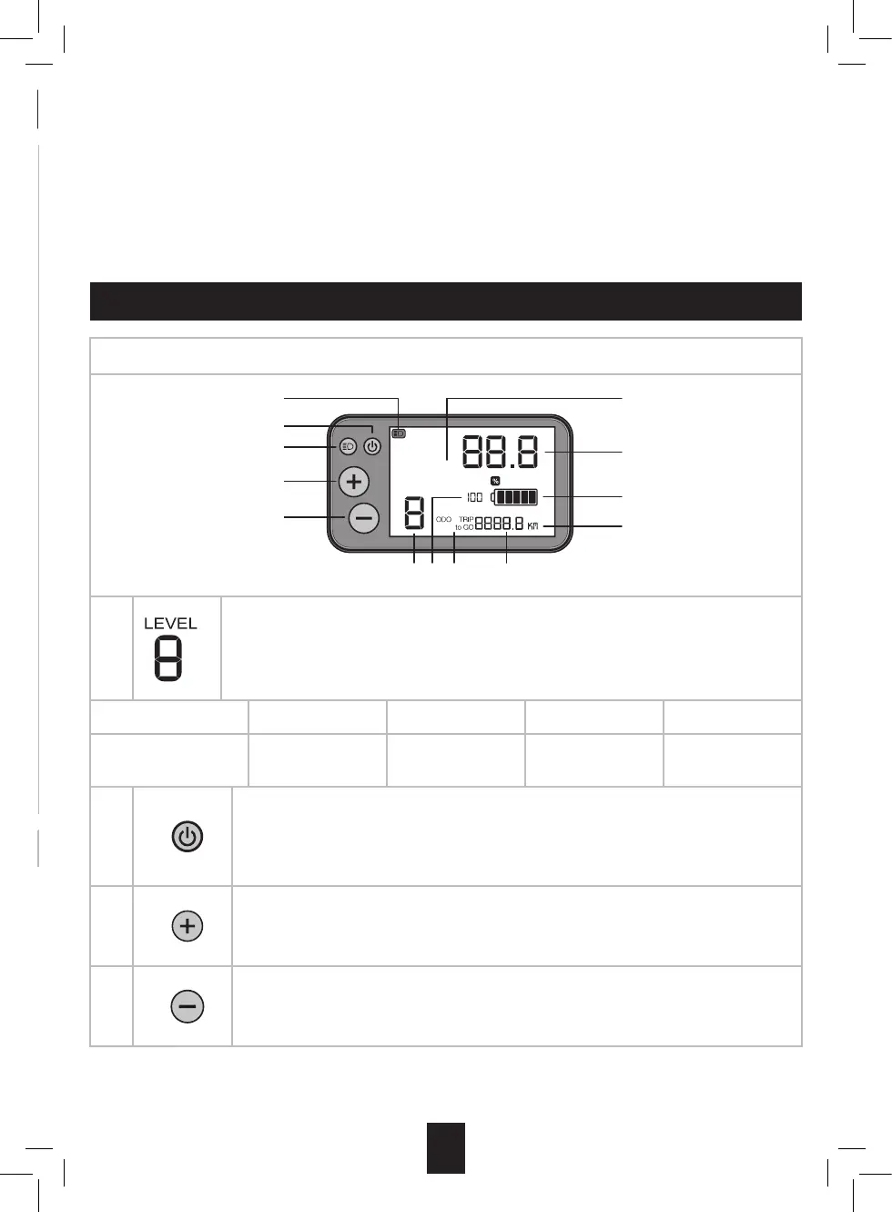 Switch the electrically-assied bicycle on and o by holding the button down for a few