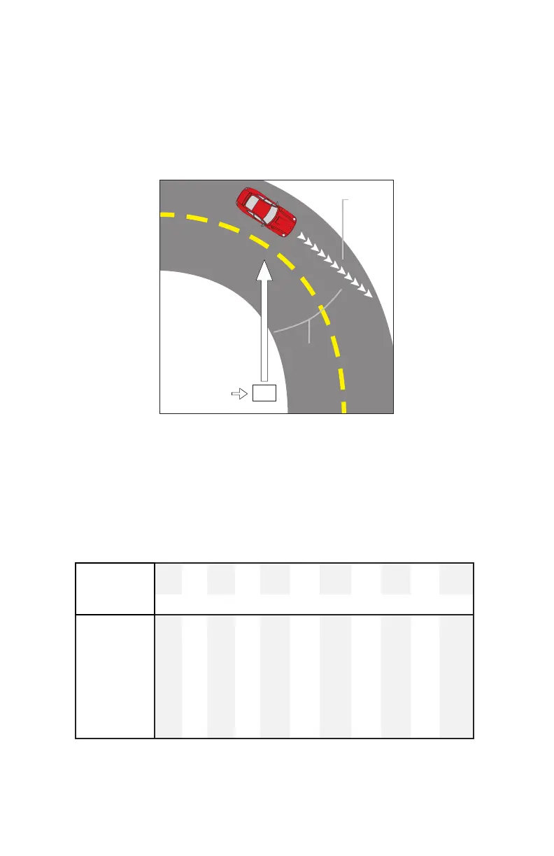always at a slight angle to the target vehicle to avoid collisions.