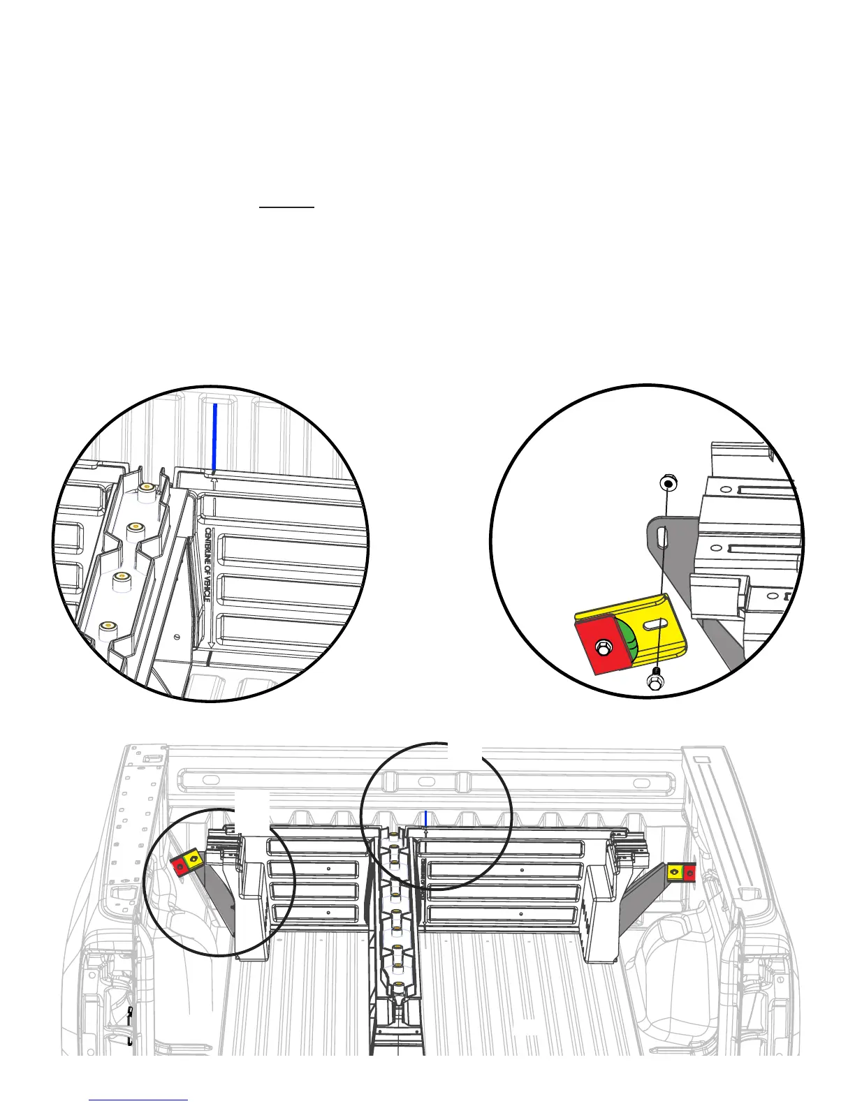 • DETAIL B: Place stud brackets cabside of cabside brackets (yellow). Loosely fasten with 3/4" bolt and flanged nut;