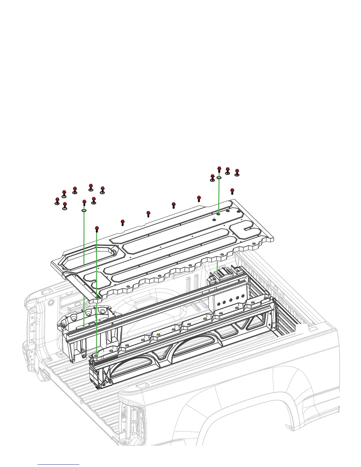 • Five (5'2" bed) or six (6'4" bed) bolts through deck panel into center vert; BAG S1.
