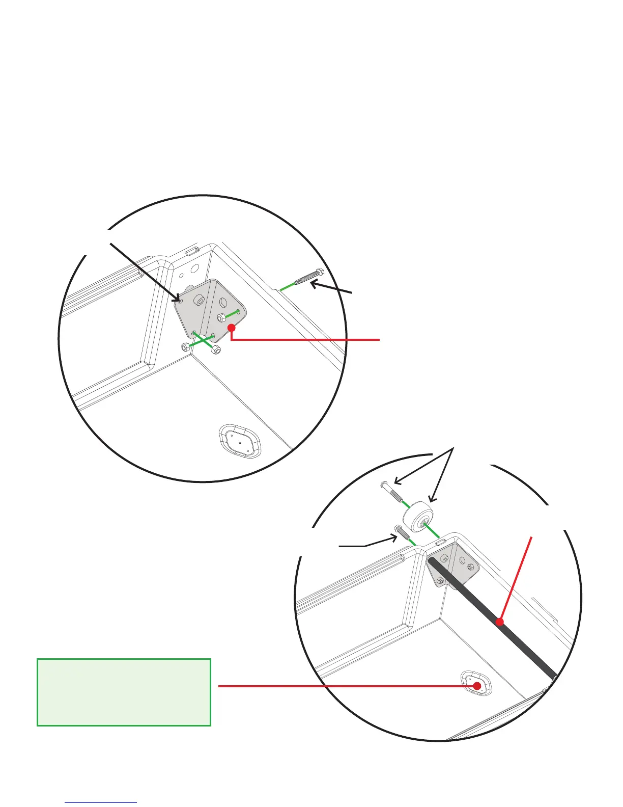 • Attach wheels onto drawer brackets with a 7/32" hex wrench; BAG WHEELS.