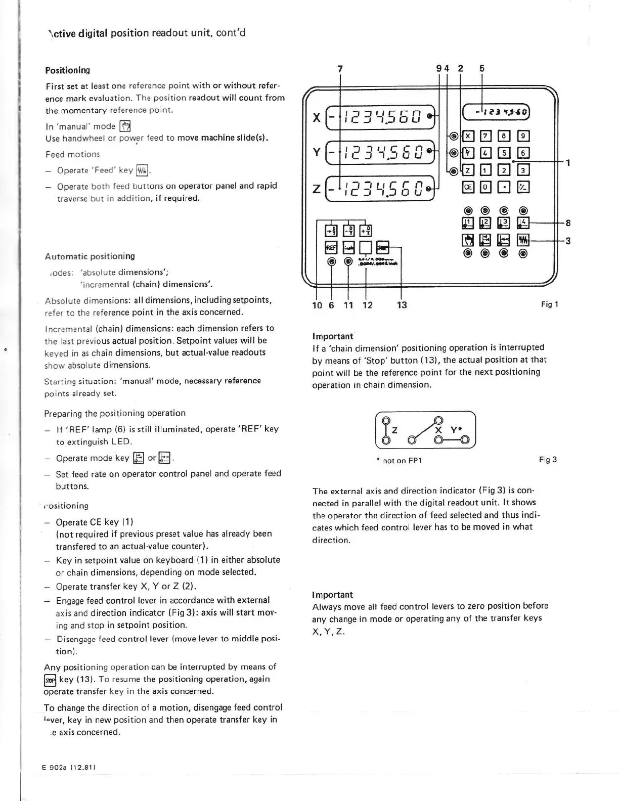 DECKEL FP1 - Active digital position readout unit; Positioning; Preparing the positioning operation