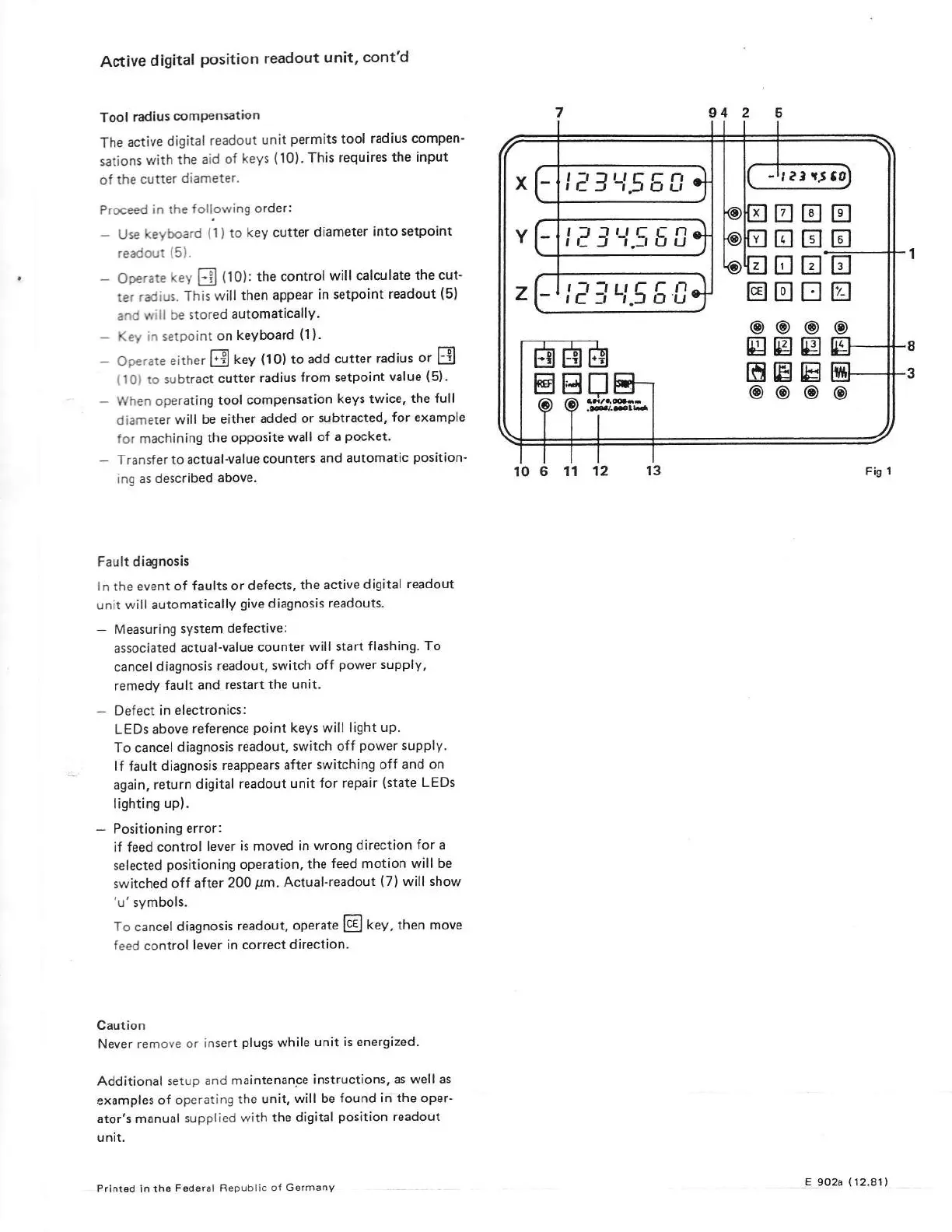 DECKEL FP1 - Active digital position readout unit; Tool radius compensation; Fault diagnosis