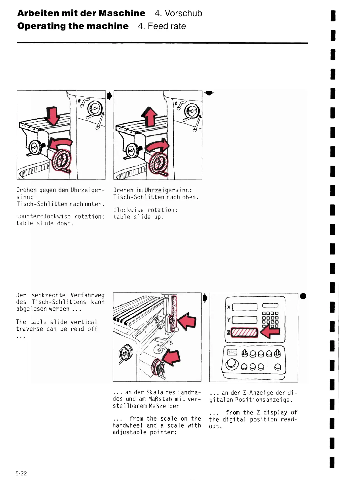 Arbeiten mit der Maschine 4. Vorschub
