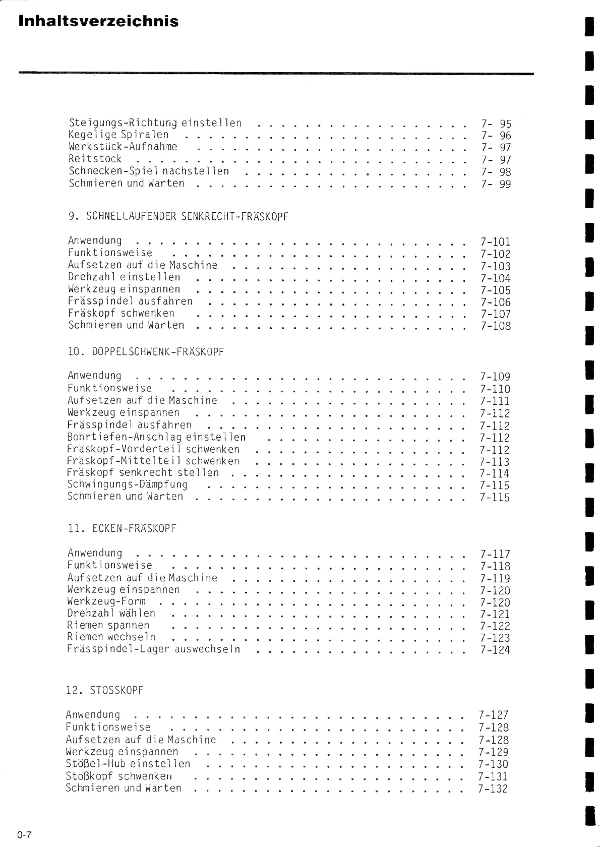 Fräskopf senkrecht stellen .................... 7-114