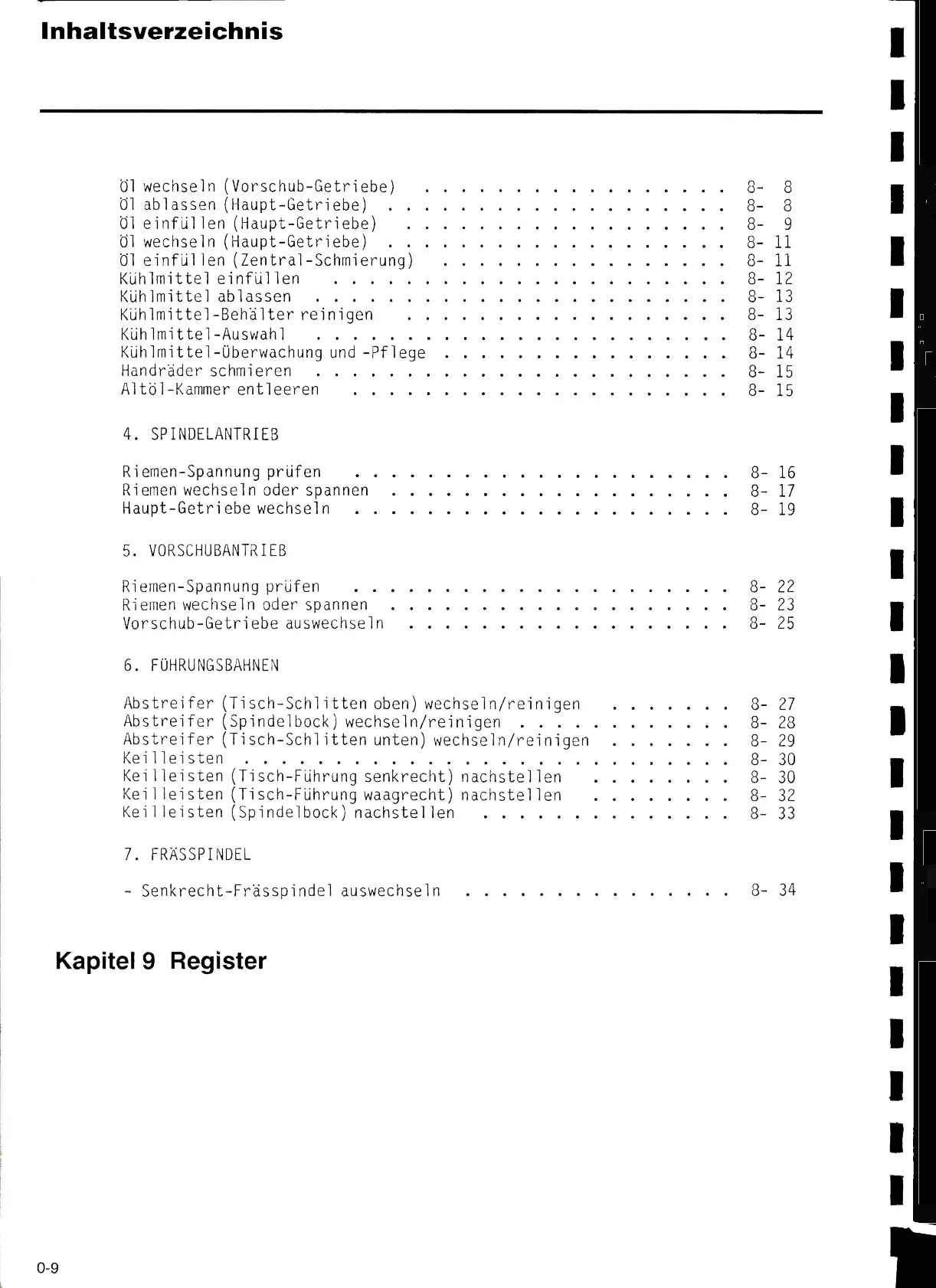 Ő1 wechseln (Vorschub-Getriebe) ................. 8- 8