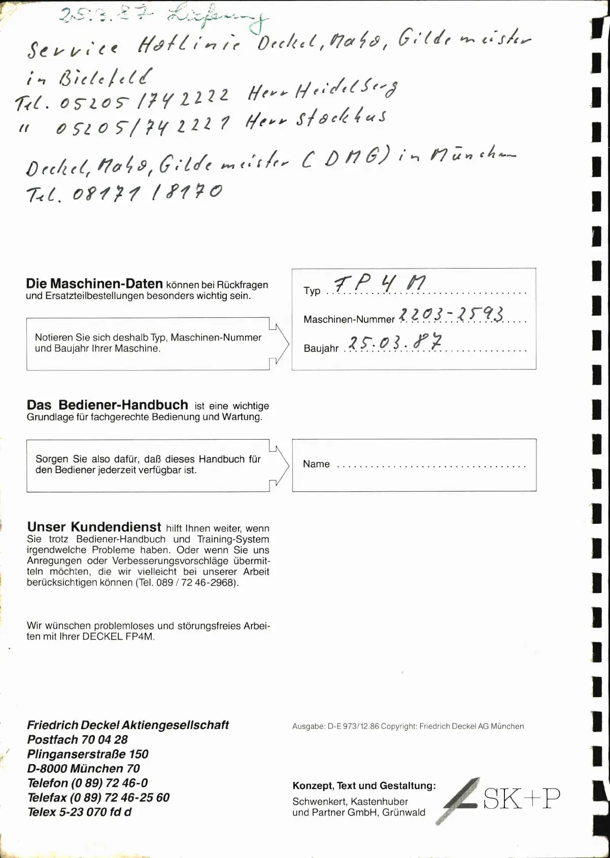Ausgabe: D-E 973/12.86 Copyright: Friedrich Deckel AG München