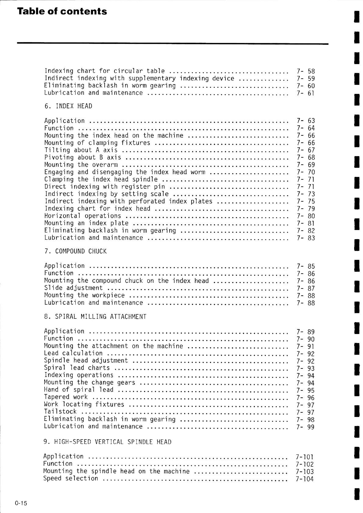Indexing chart for index head ..................................... 7- 79