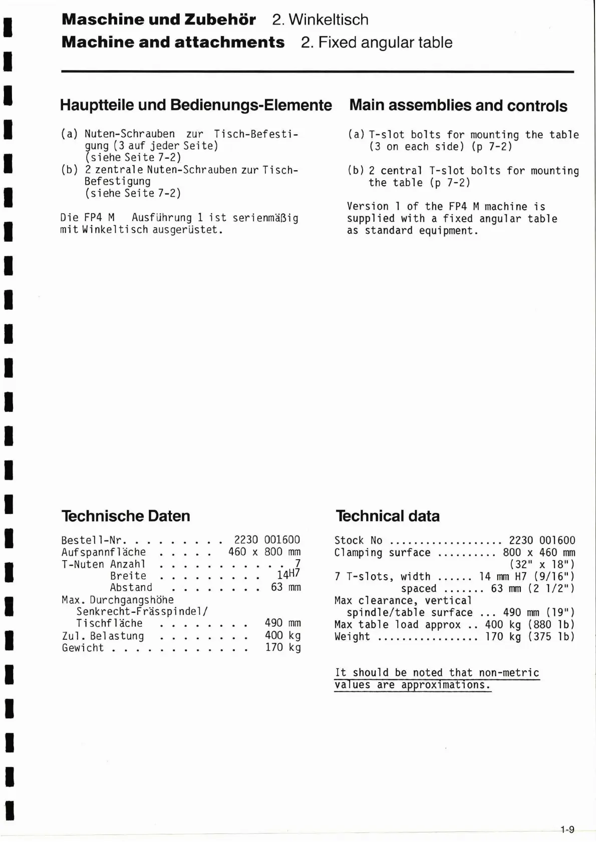 Machine and attachments 2. Fixed angular table