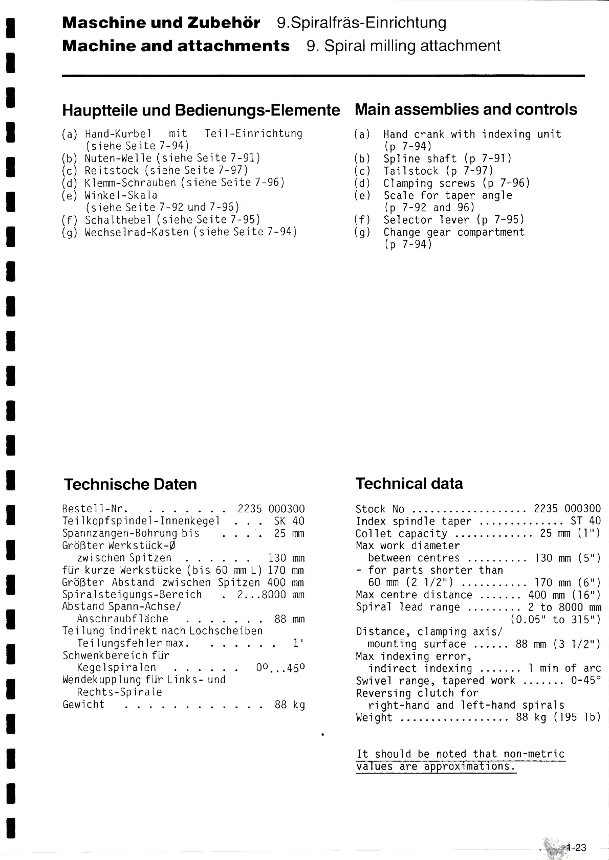 Machíne and attachments 9. Spiral milling attachment