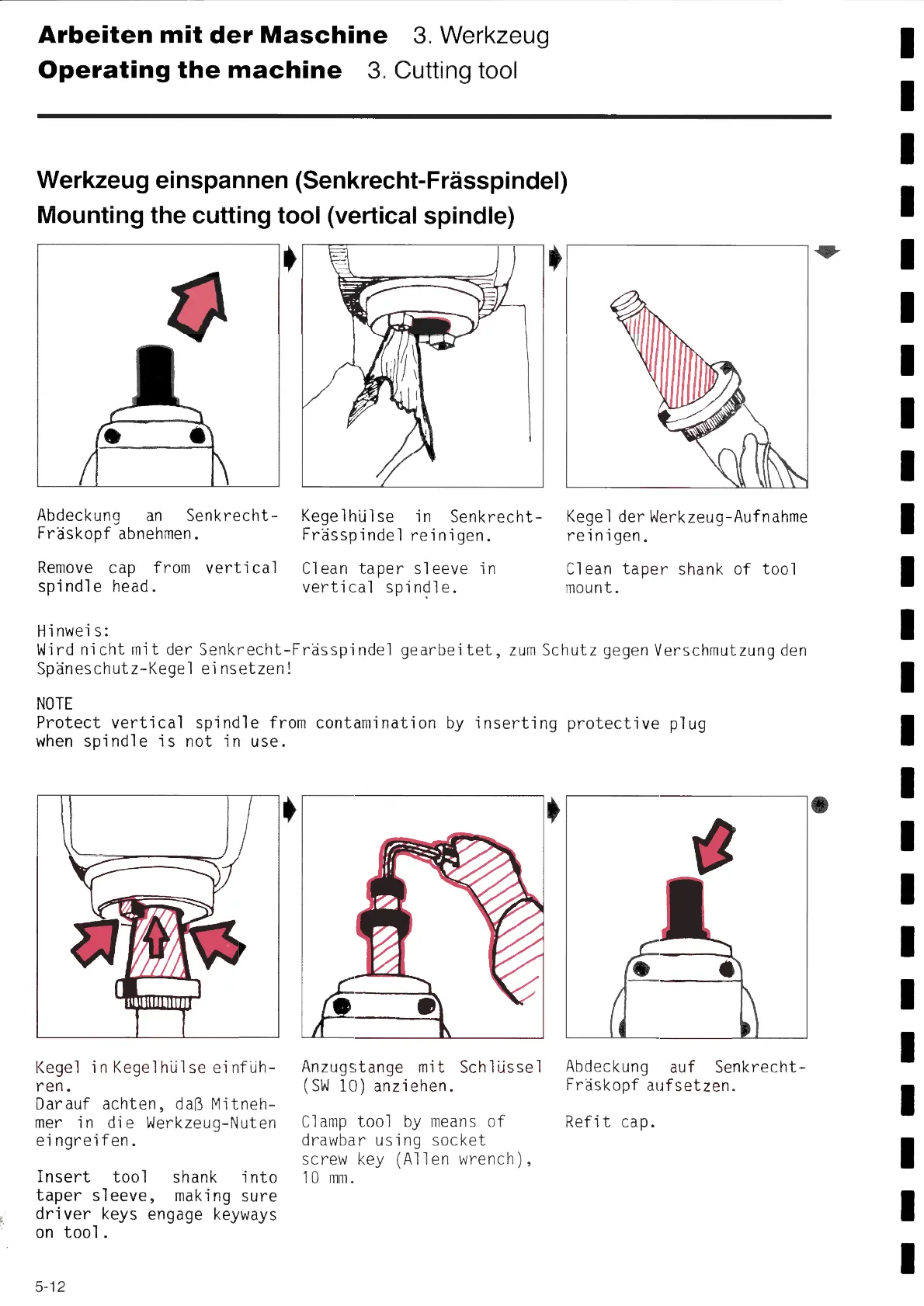 Werkzeug eínspannen (Senkrecht-Frässpíndel)