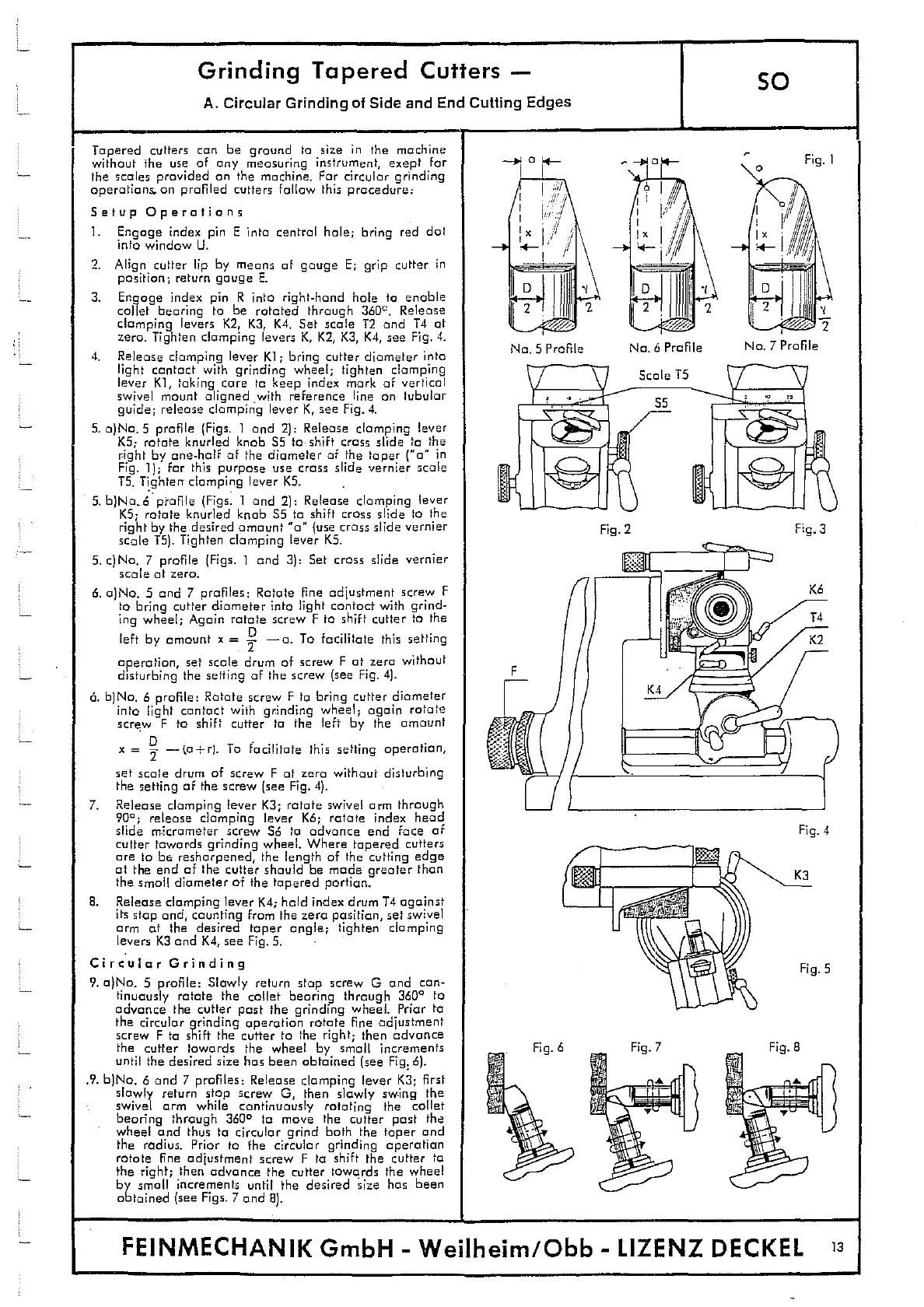 6. a)No. 5 and 7 profiles: Rotate fine adjustment screw F