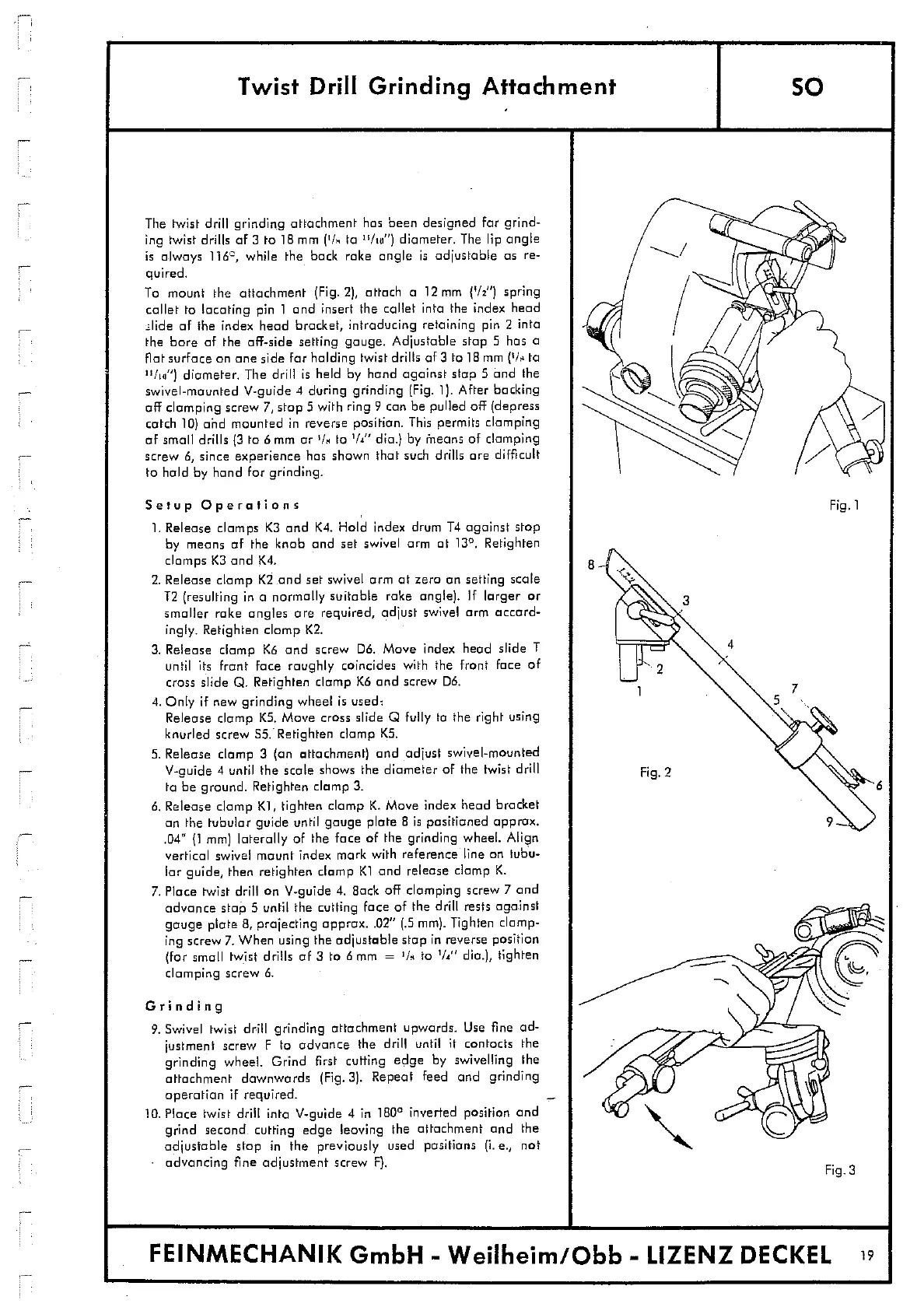 Swivel twist drill grinding attachment upwards. Use fine ad-