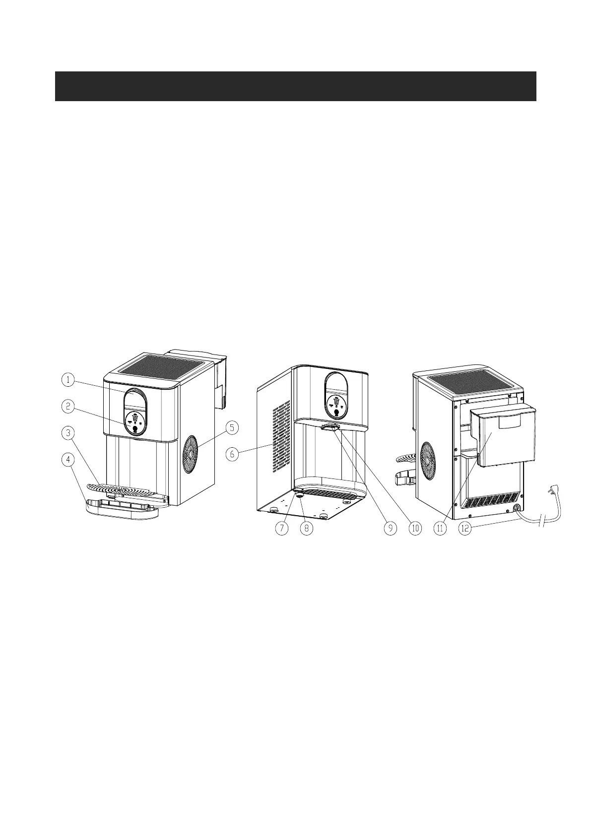 8. Water drain cap 2: at front bottom side of the unit (Drain the water stored inside the machine due