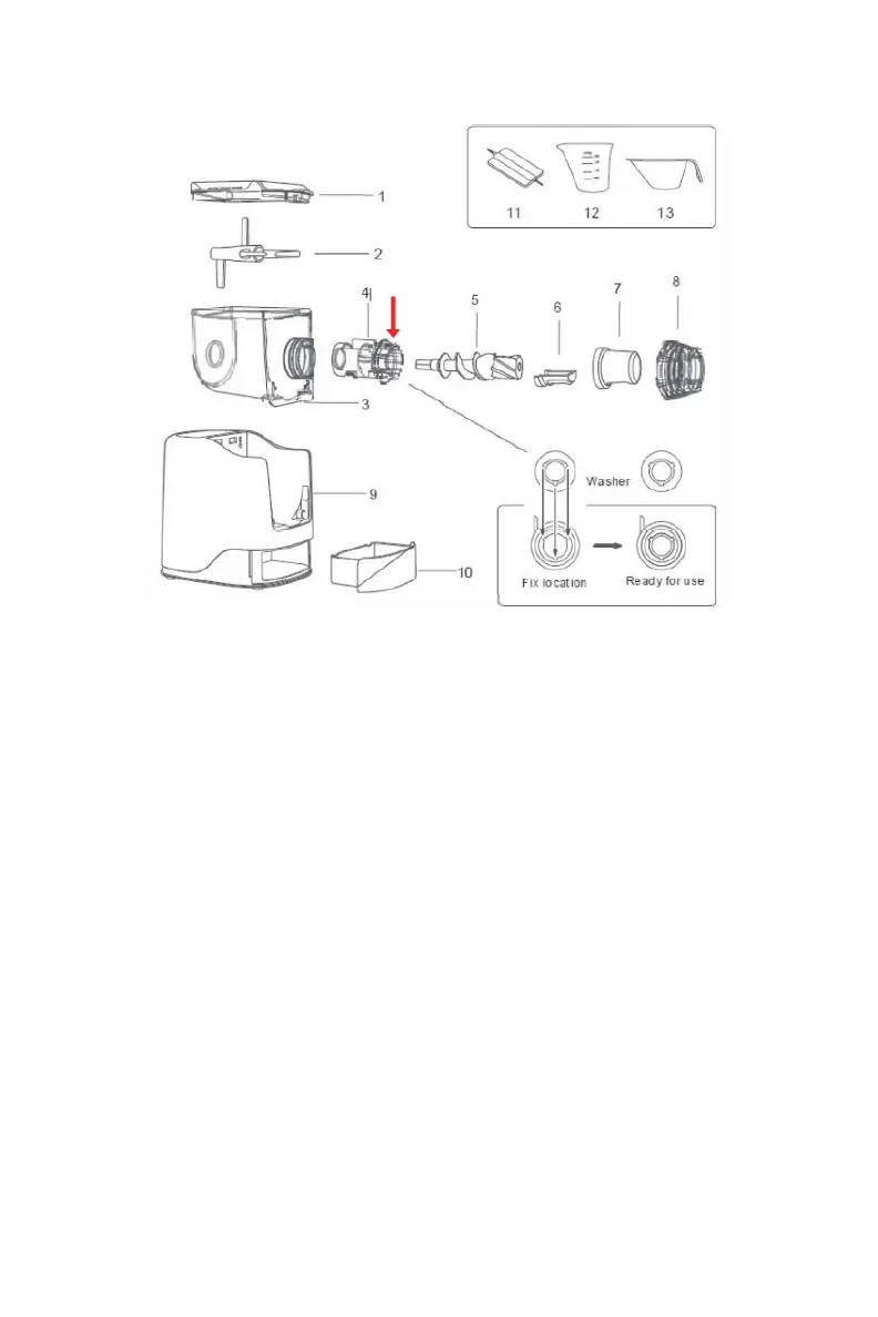 red arrow. This washer may be detached for cleaning. After