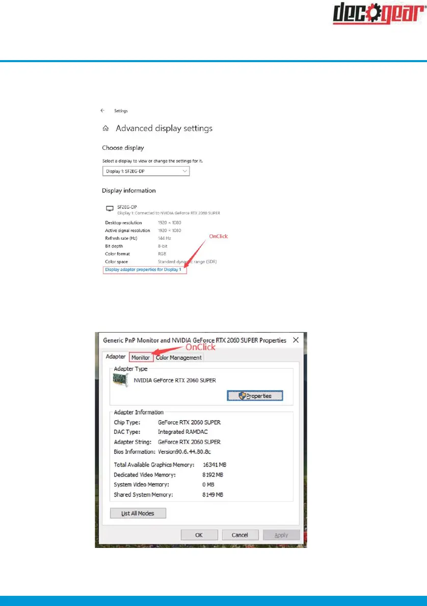 3. Click “Display adapter properties of Monitor 1” (Pls refer to the below picture)