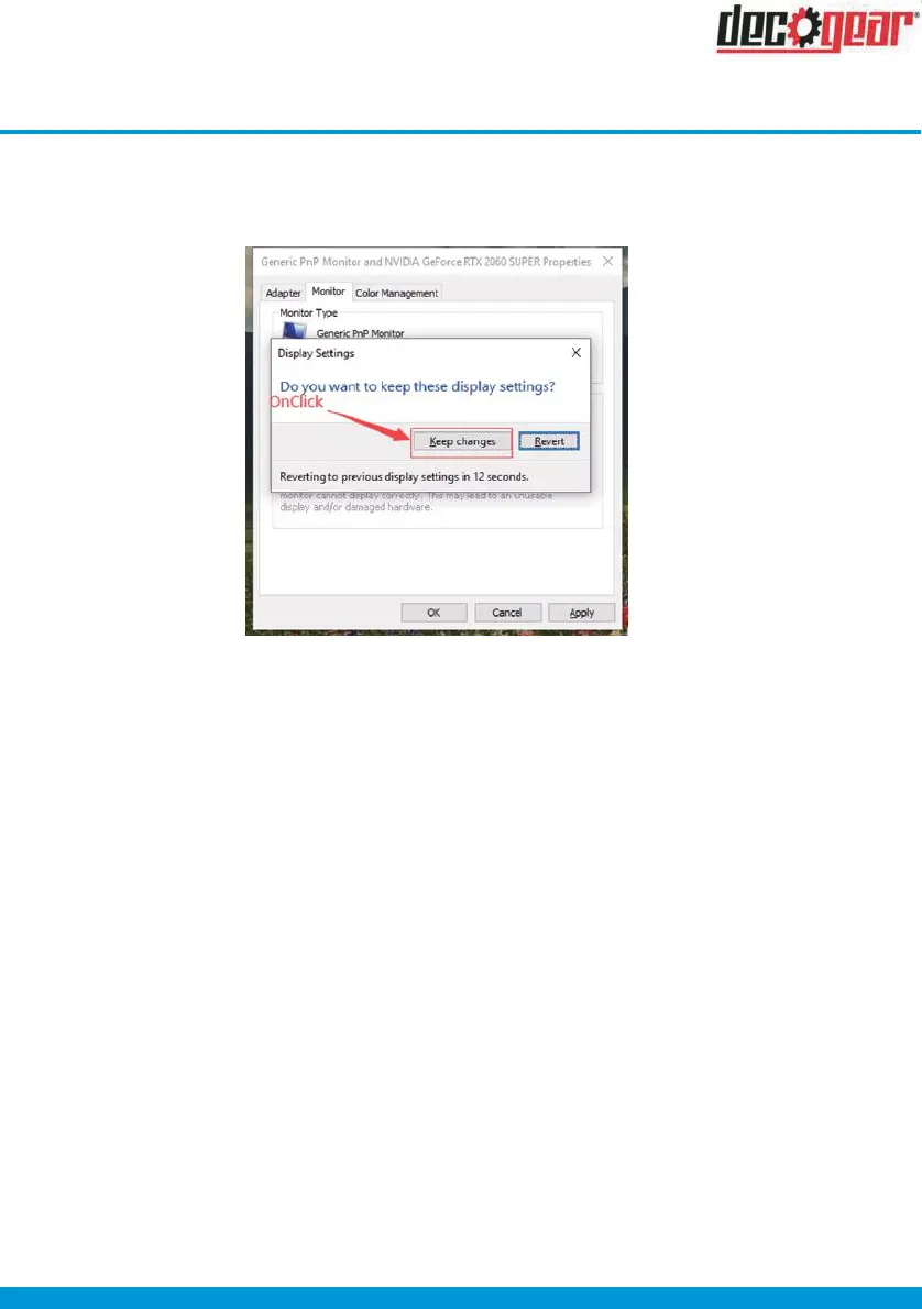 7. After clicking the “apply”, you must click “keep changes” then the monitor switch to refresh