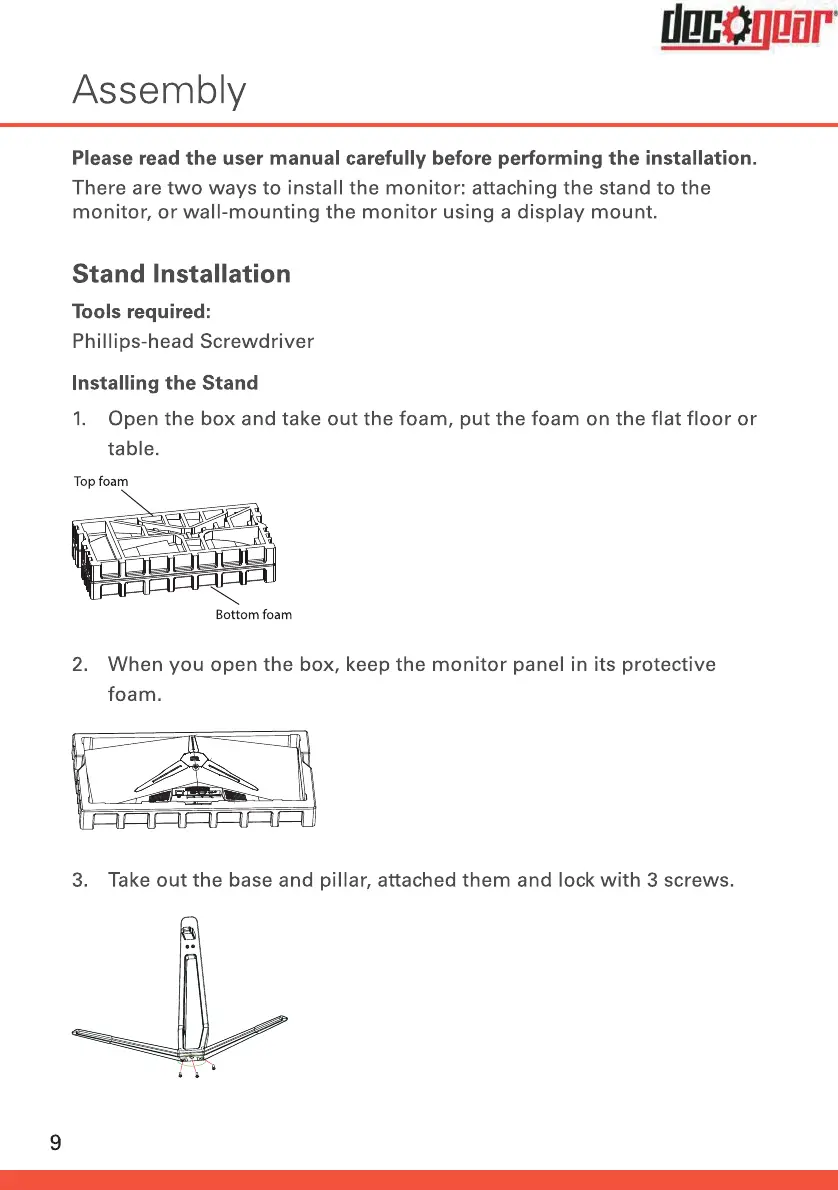 Deco Gear DGVIEW201 - Assembly; Stand Installation
