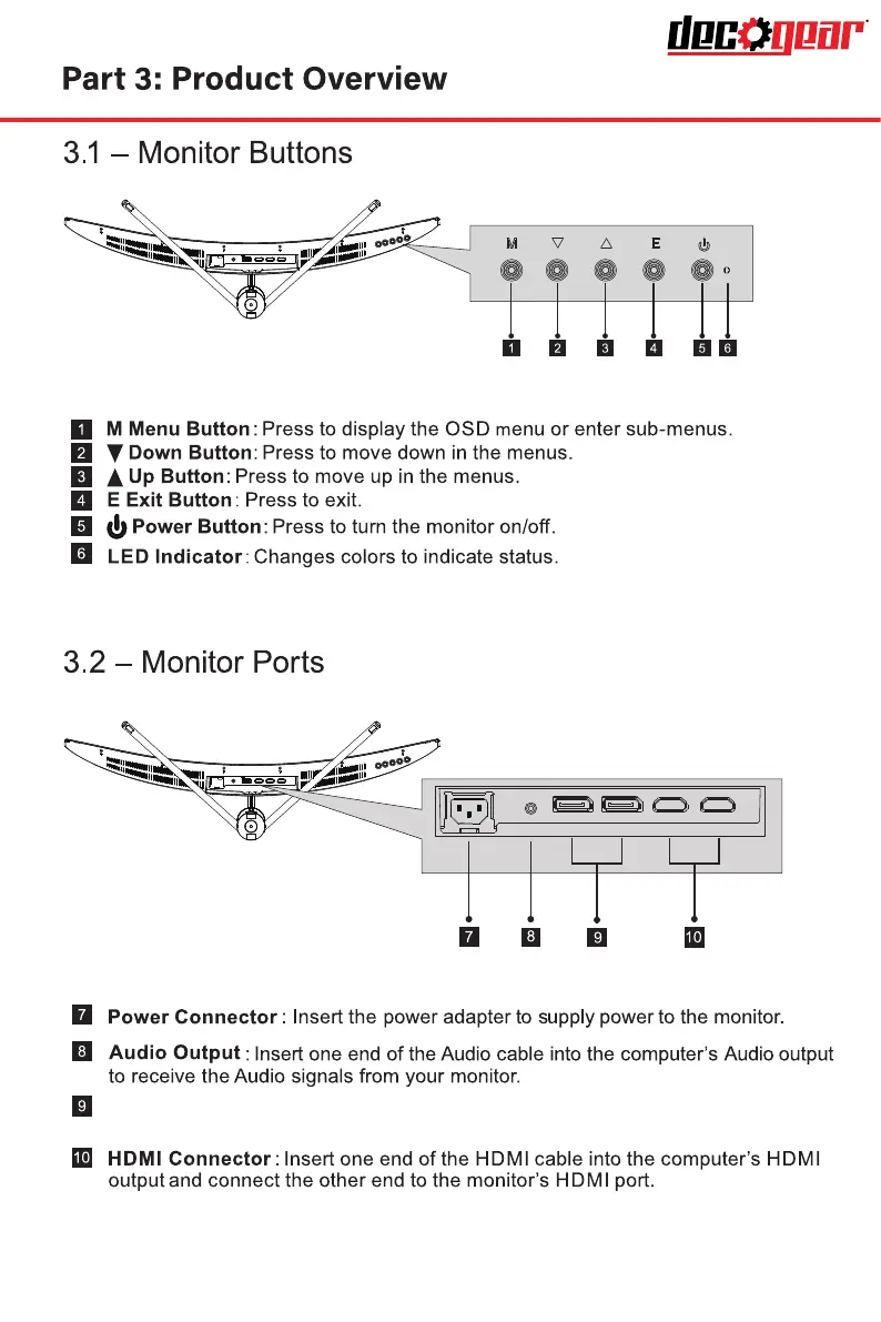 Deco Gear DGVIEW304 - Product Overview; Monitor Buttons; Monitor Ports