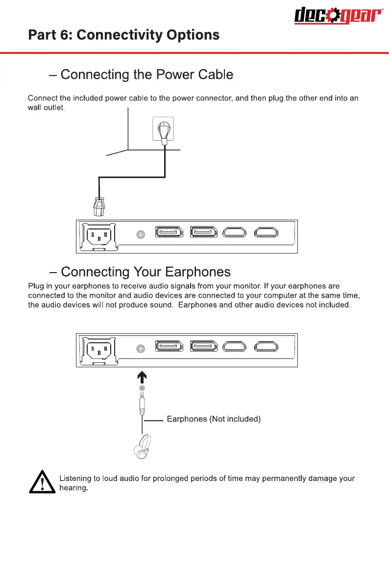 Deco Gear DGVIEW304 - Connectivity Options; Connecting the Power Cable; Connecting Your Earphones