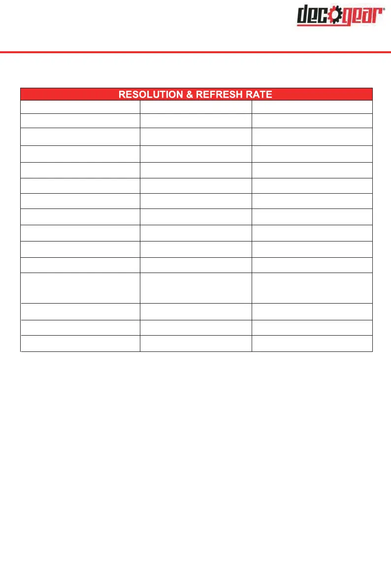 Deco Gear DGVIEW490 - Supported HDMI Resolution