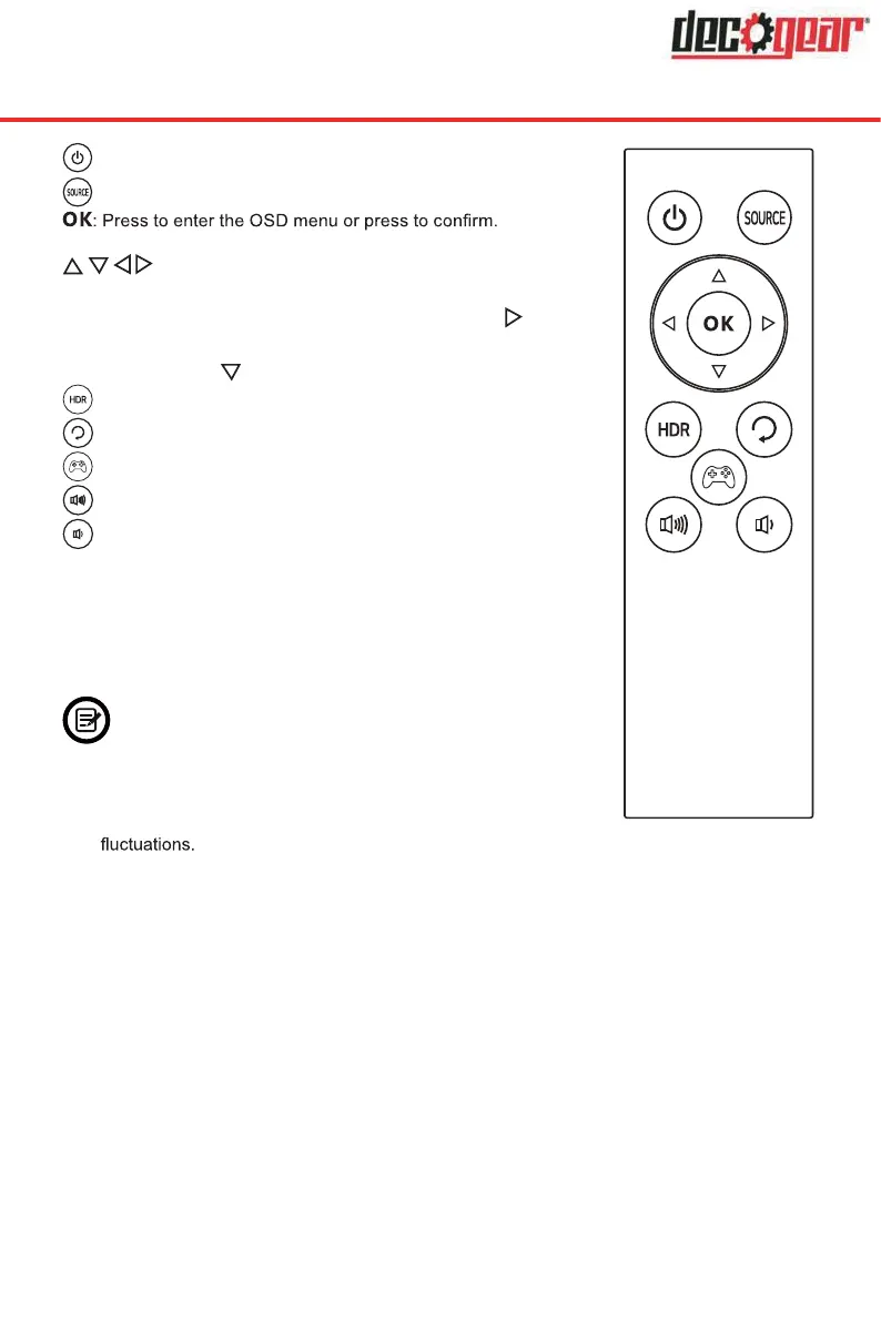 • The remote control’s range is approximately 16.4~23 ft. Use it within this range.