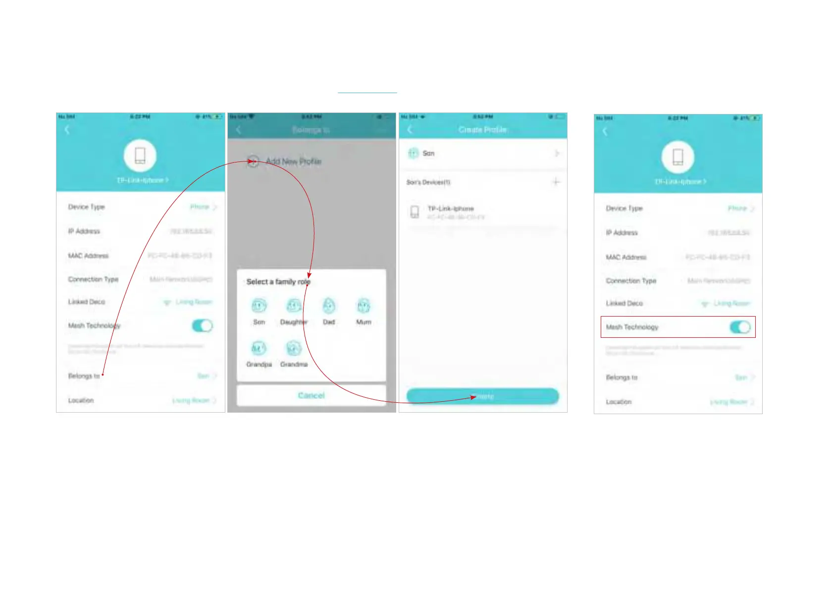Tap Belongs to to add a unique profile for the device and manage its online activities. For example, when