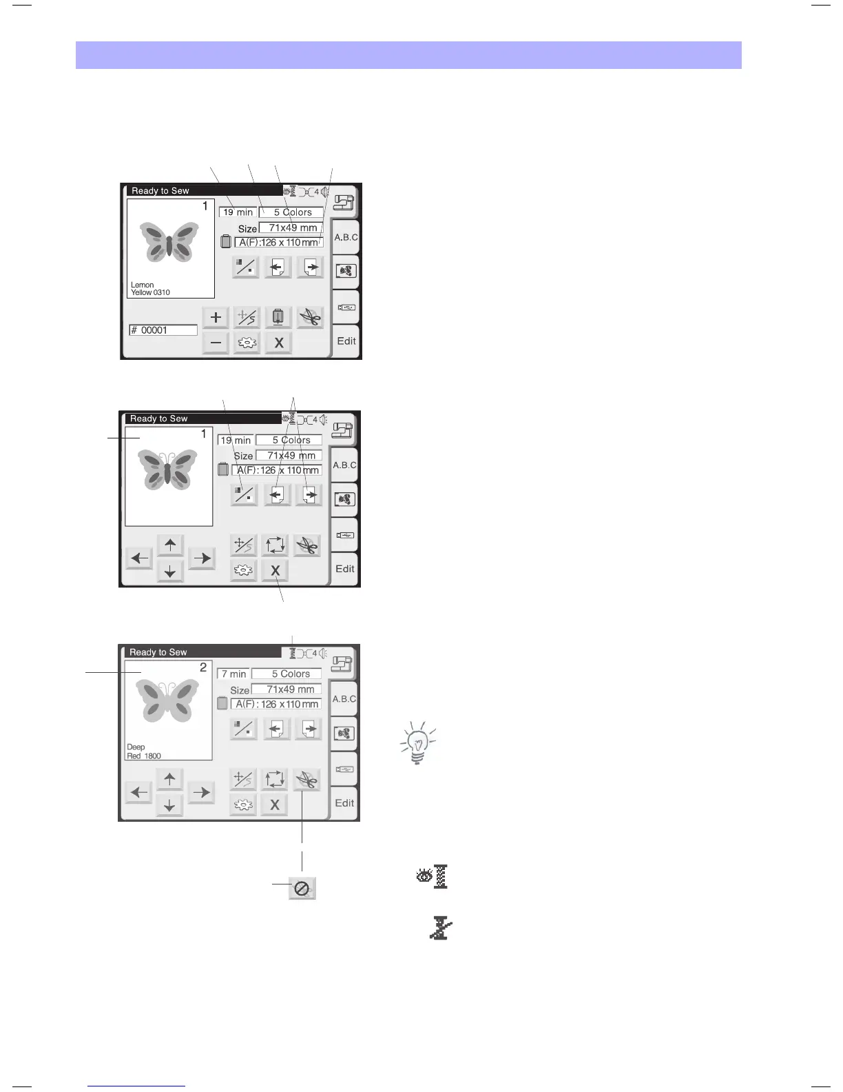 In the embroidery window, the following information will be shown.