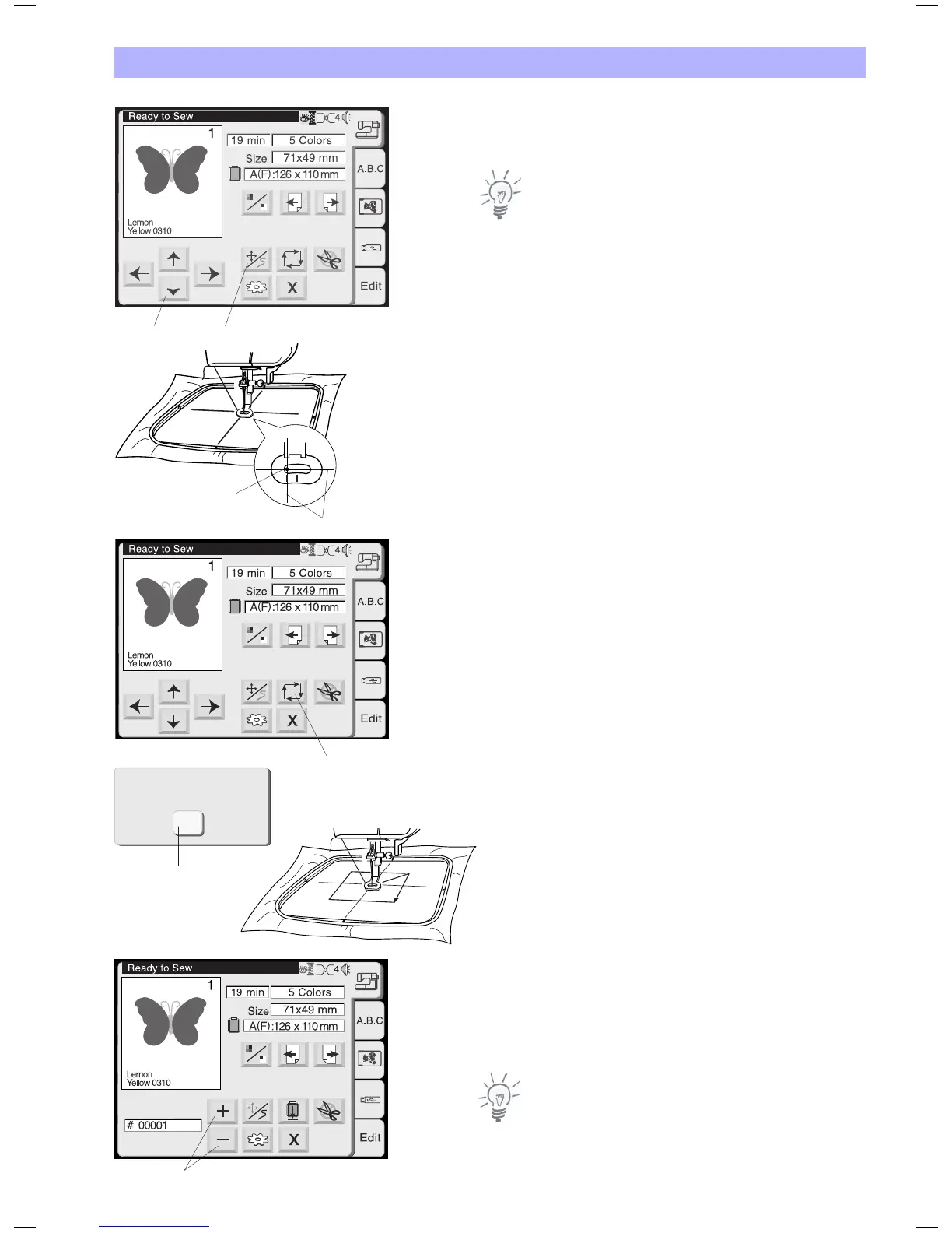 • Youcanusethesekeystomovetheembroideryhooptowhere