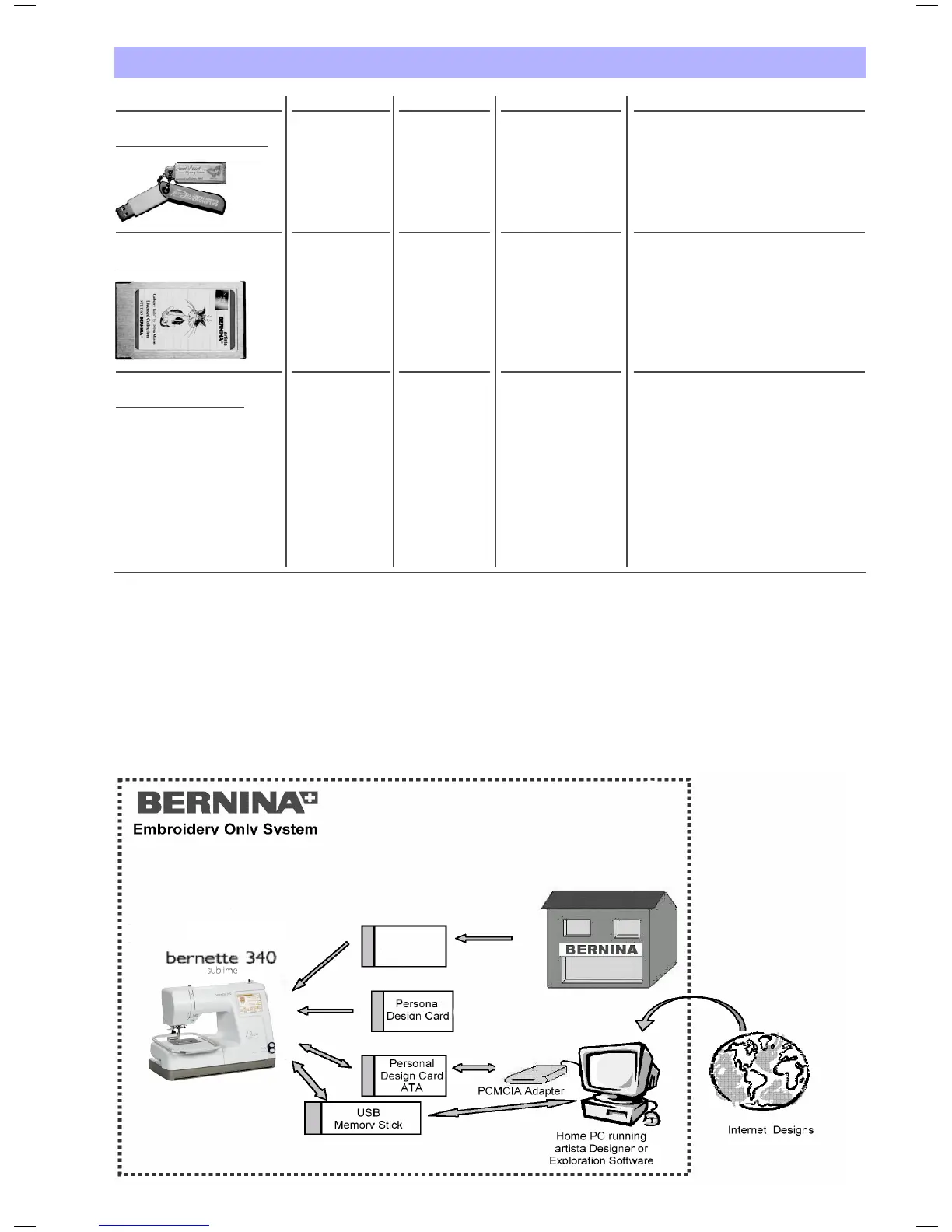 Below is a graphical summary of all different ways to transfer embroidery designs into the Deco 340 and back. The most common procedures