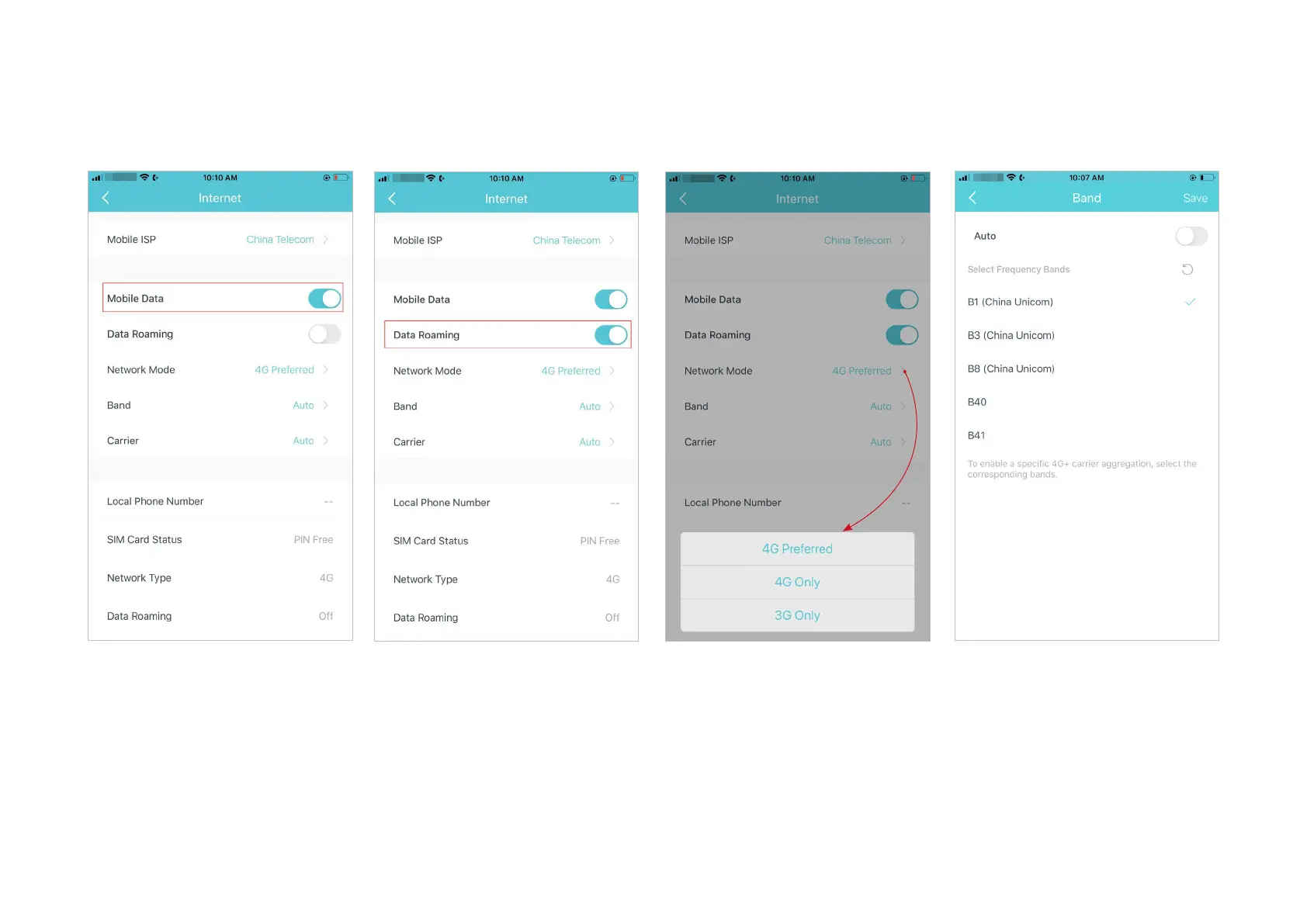 (4G Preferred / 4G Only / 3G Only)
